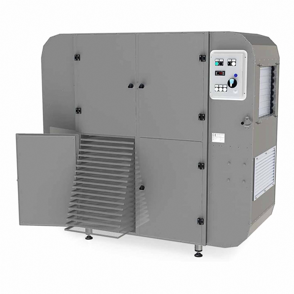 Essiccatori Industriali per essiccare Polline Zafferano Peperoncini Funghi Erbe Medicinali Erbe Officinali adatto alle esigenze della maggior parte delle piccole/medie aziende di trasformazione. È dotato di serie di una fonte di calore elettrica da 5,1 kW o, su richiesta, da 7,5 kW, che permette di lavorare fino a 65°C.