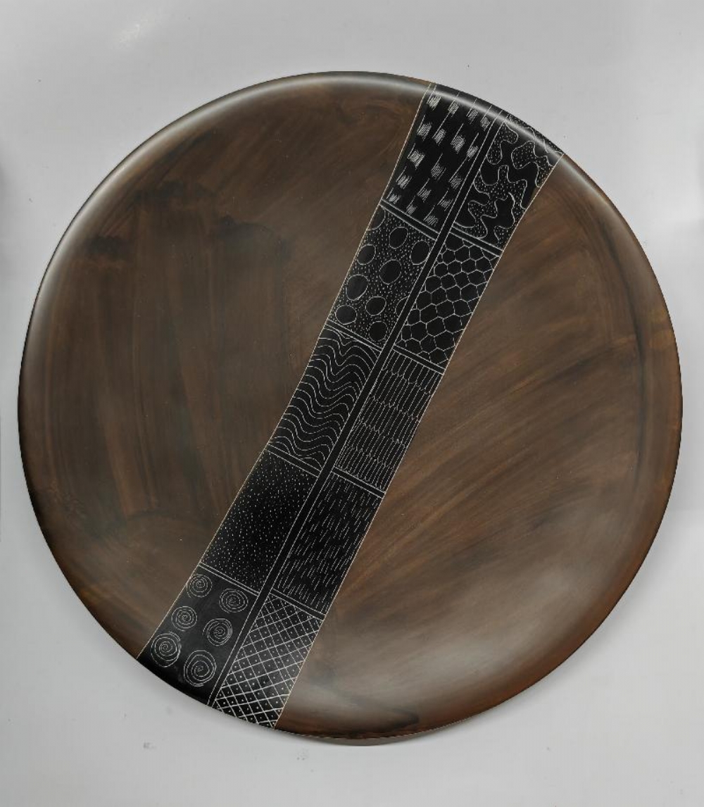 Piatto Porta Candele Decorativo Afrika Rotondo di Pietra con Motivi Geometrici Incisi a Mano 25cm Diametro Vari Colori Piatto o porta candele modello Afrika in pietra colorata caratterizzati da motivi geometrici incisi e colorati. Design: Presentano al centro una serie di pannelli con motivi astratti, geometrici o ispirati alla natura (linee, cerchi, trame a nido d'ape). Disponibilità: Disponibili in colore marrone e arancione. Dimensioni: diametro 25cm