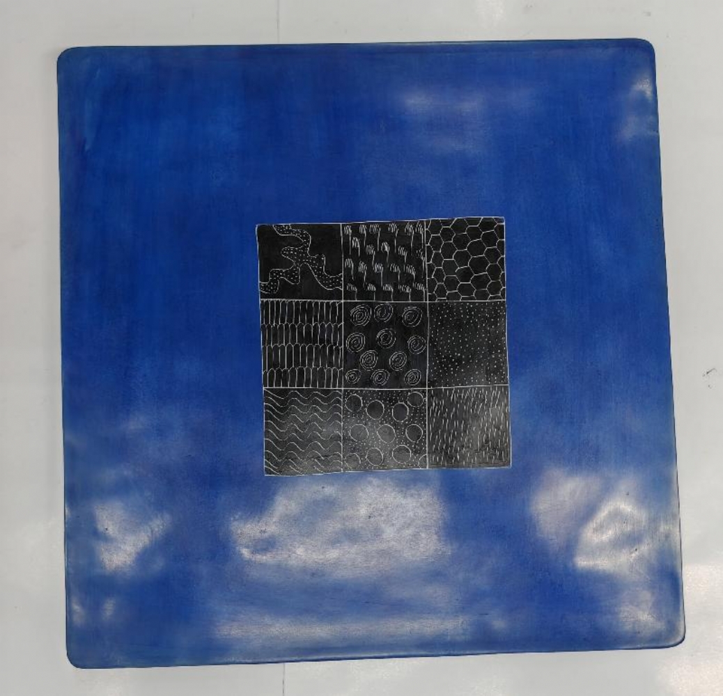 Piatto Porta Candele Decorativo Afrika Quadrato di Pietra con Motivi Geometrici Incisi a Mano 30cm Colore Blu Piatto o porta candele modello Afrika in pietra colorata caratterizzati da motivi geometrici incisi e colorati. Design: Presentano al centro una serie di pannelli con motivi astratti, geometrici o ispirati alla natura (linee, cerchi, trame a nido d'ape). Disponibilità: Disponibili in colore blu. Dimensione: 30x30cm