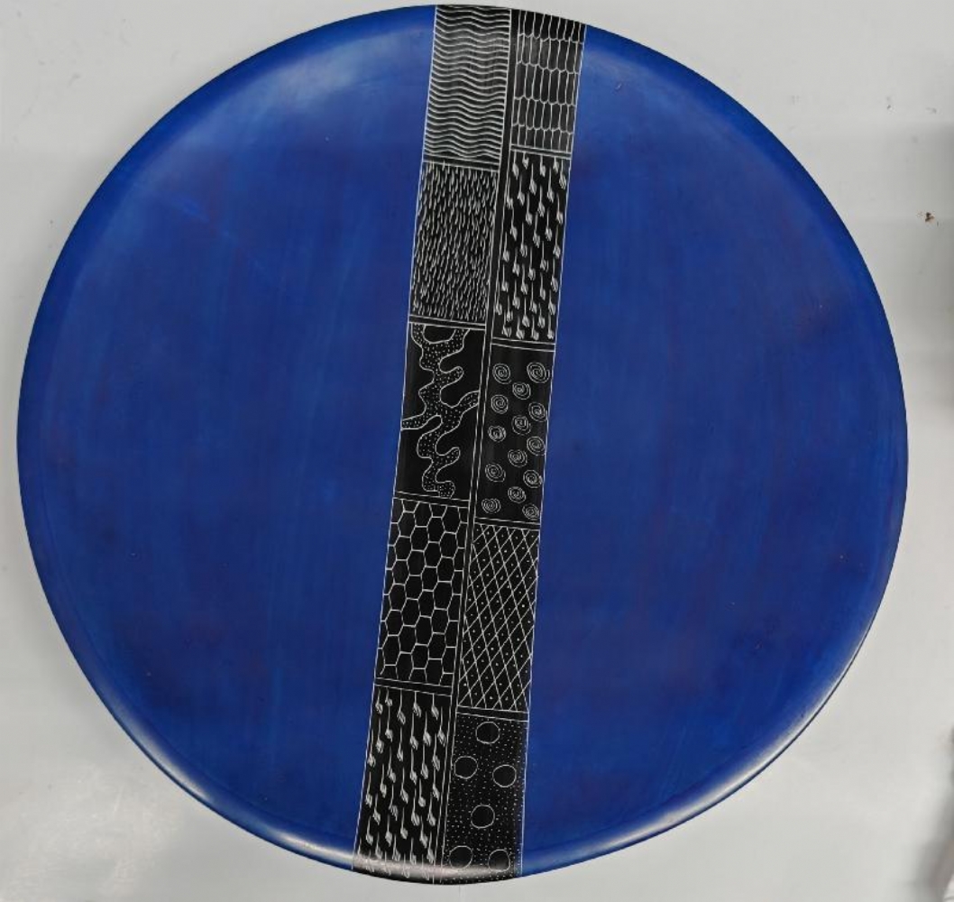 Piatto Porta Candele Decorativo Afrika Rotondo di Pietra con Motivi Geometrici Incisi a Mano 35cm Diametro Colore Blu Piatto o porta candele modello Afrika in pietra colorata caratterizzati da motivi geometrici incisi e colorati. Design: Presentano al centro una serie di pannelli con motivi astratti, geometrici o ispirati alla natura (linee, cerchi, trame a nido d'ape). Disponibilità: Disponibili in colore blu. Dimensioni: diametro 35cm