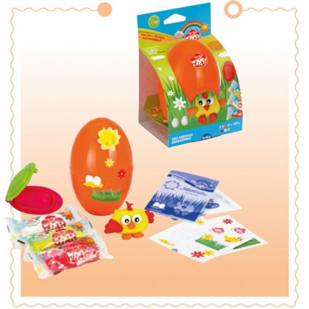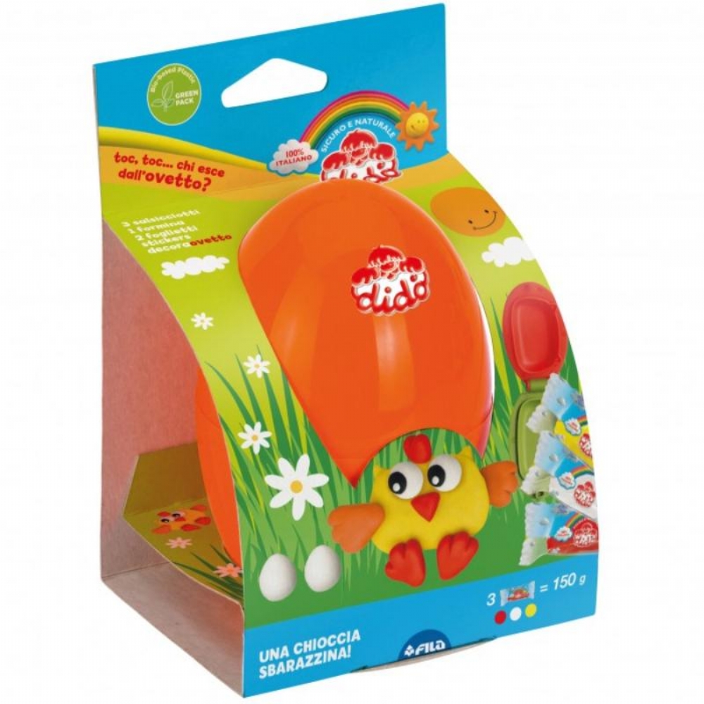 Fila Pasta da Modellare Didò Toc Toc Sorpresa 150gr Colori Asssortiti Didò Toc Toc...sopresa! Contiene: 1 ranocchio, 1 chioccia, 1 pinguino, 1 millepiedi con 3 salsicciotti da 50 g in colori assortiti + 1 formina nacchera e 2 stickers decora ovetto in confezione. Il prezzo è per l'acquisto di un singolo uovo