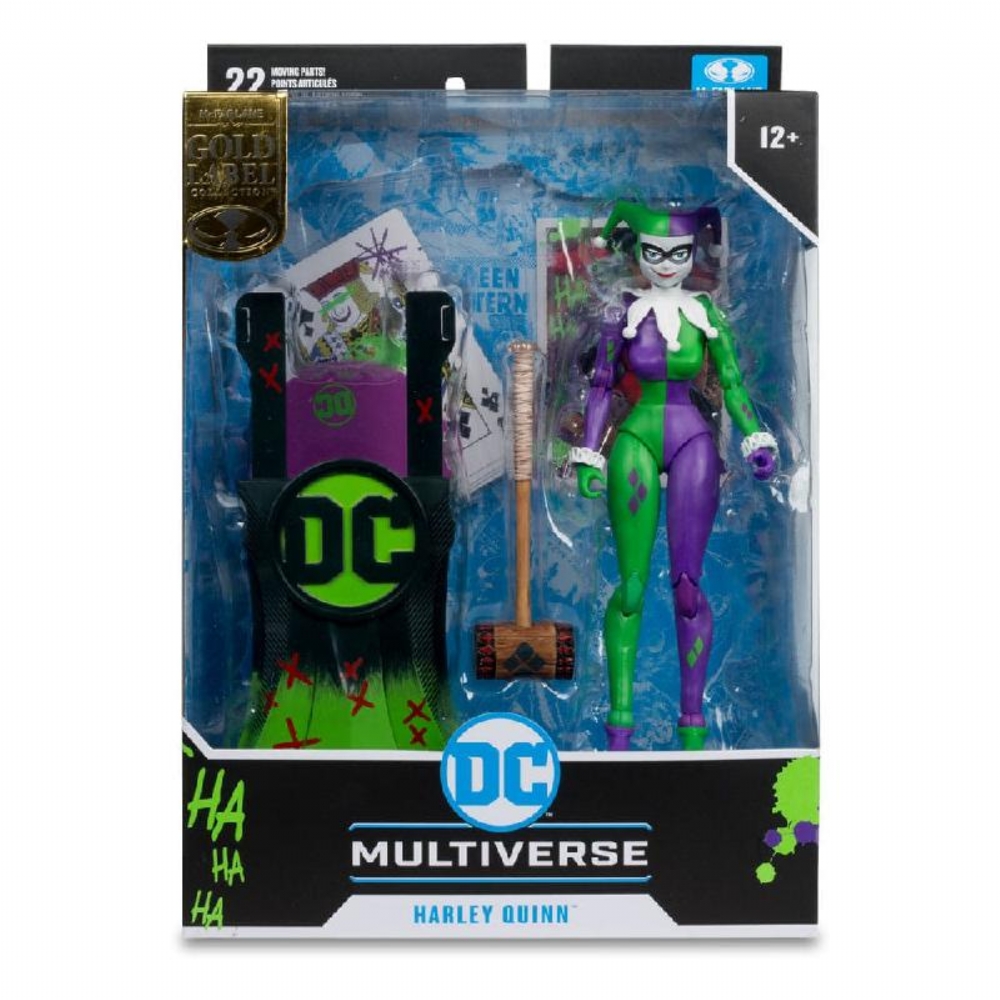Harley Quinn Jokerizzata Gold Label DC Multiverse Action Figure 18cm McFarlane Toys Harley Quinn presenta il deco "JOKERIZED" Include accessori Jokeried: una carta d'arte Mallet, 4 carte da gioco, titolare della carta da collezione e base espositiva. Include carta artistica da collezione con personaggi sul davanti e biografia del personaggio sul retro. Progettato con Ultra Articolazione con fino a 22 parti mobili per una gamma completa di posa e gioco