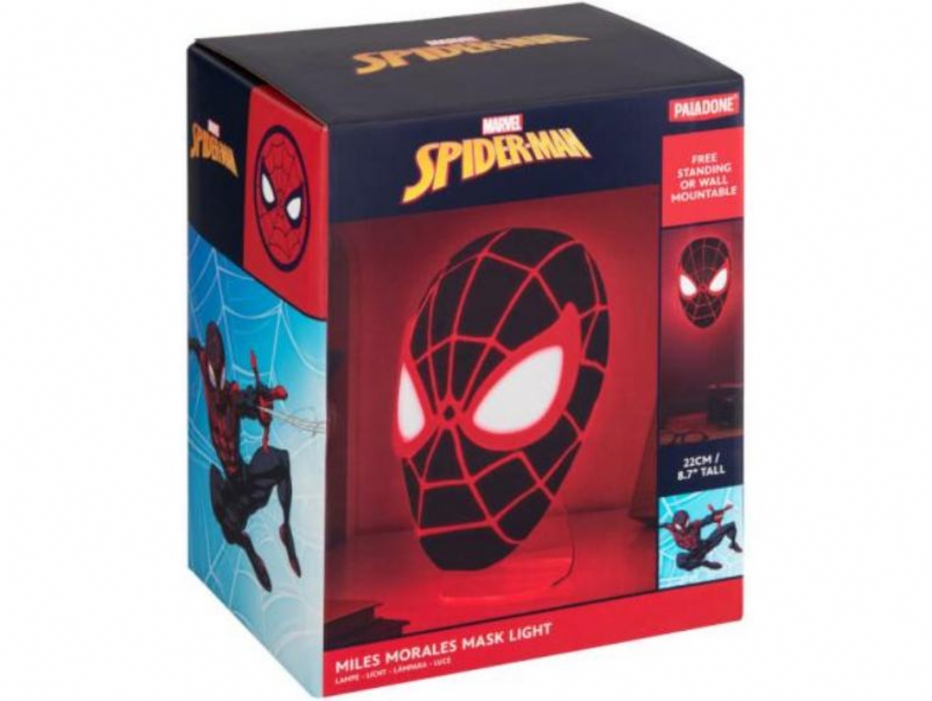 Lampada Maschera Spider-man 3D Led Light Miles Morales Paladone Marvel Nera Rossa 22cm La lampada è progettata a forma di maschera di Spider-Man, in particolare quella di Miles Morales, con colorazione nera e rossa.