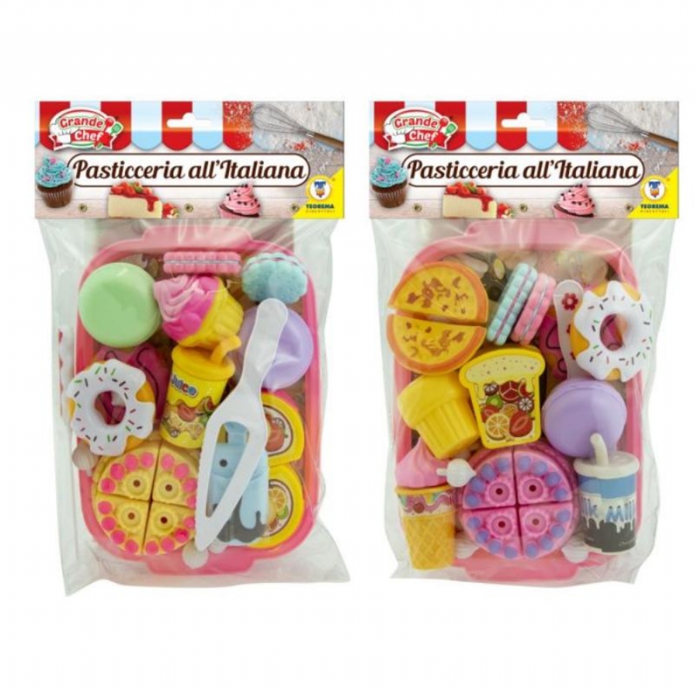 Set pasticceria italiana con diversi dolci dalle ciambelline alla torta, realizzato in plastica.