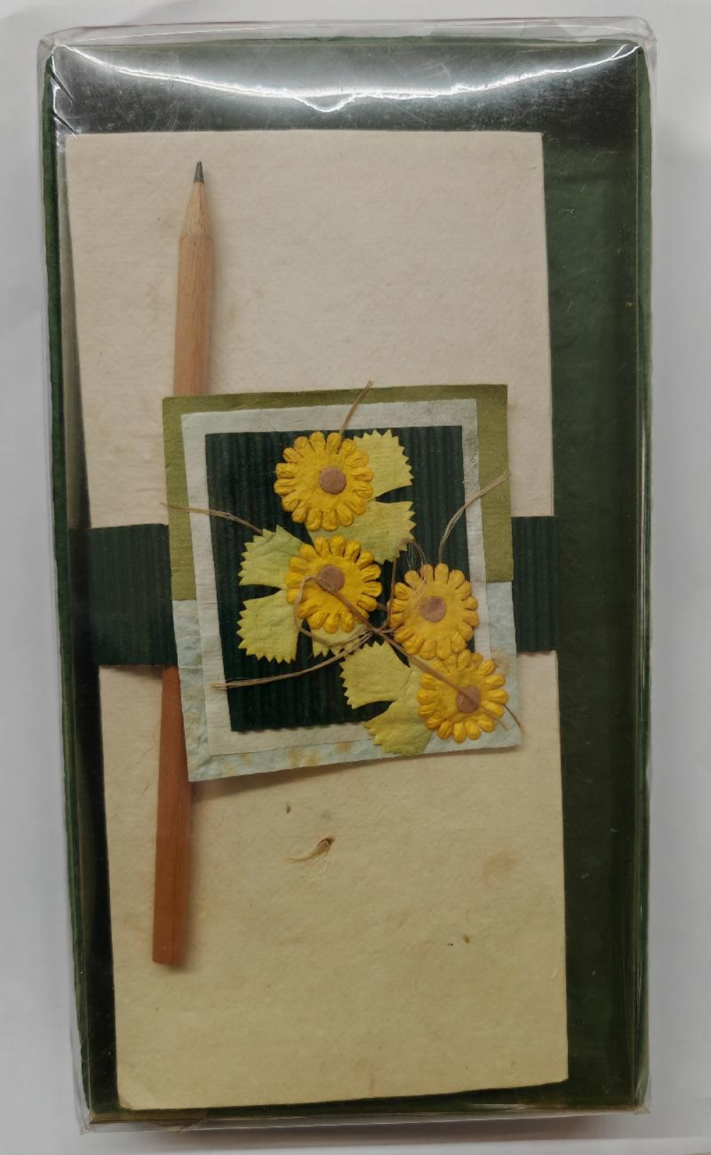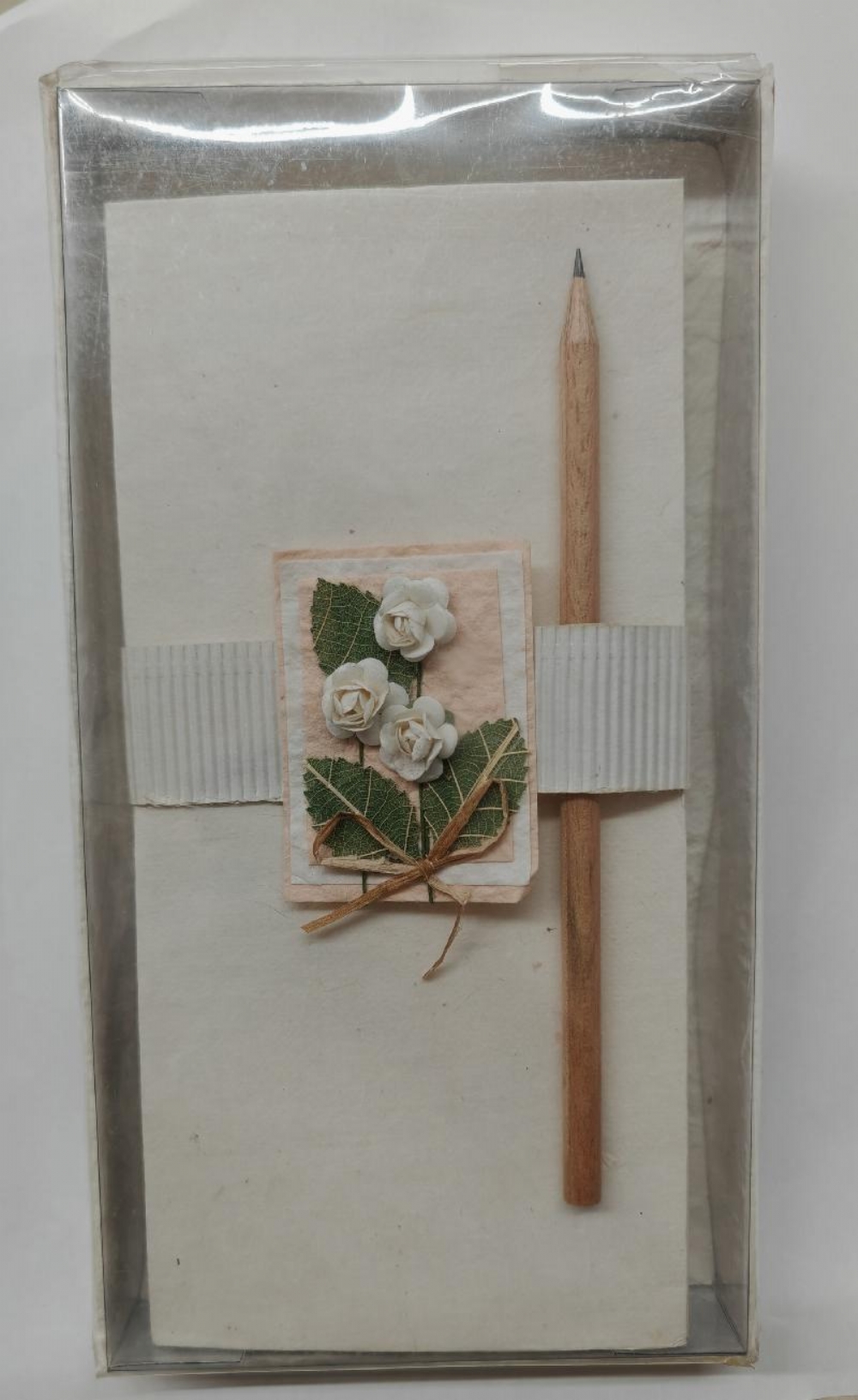 Set Carta da Lettere con Buste Confezionate in Scatola di Carta di RisoSet Carta da Lettere con Buste in scatola con una decorazione di fiori secchi.