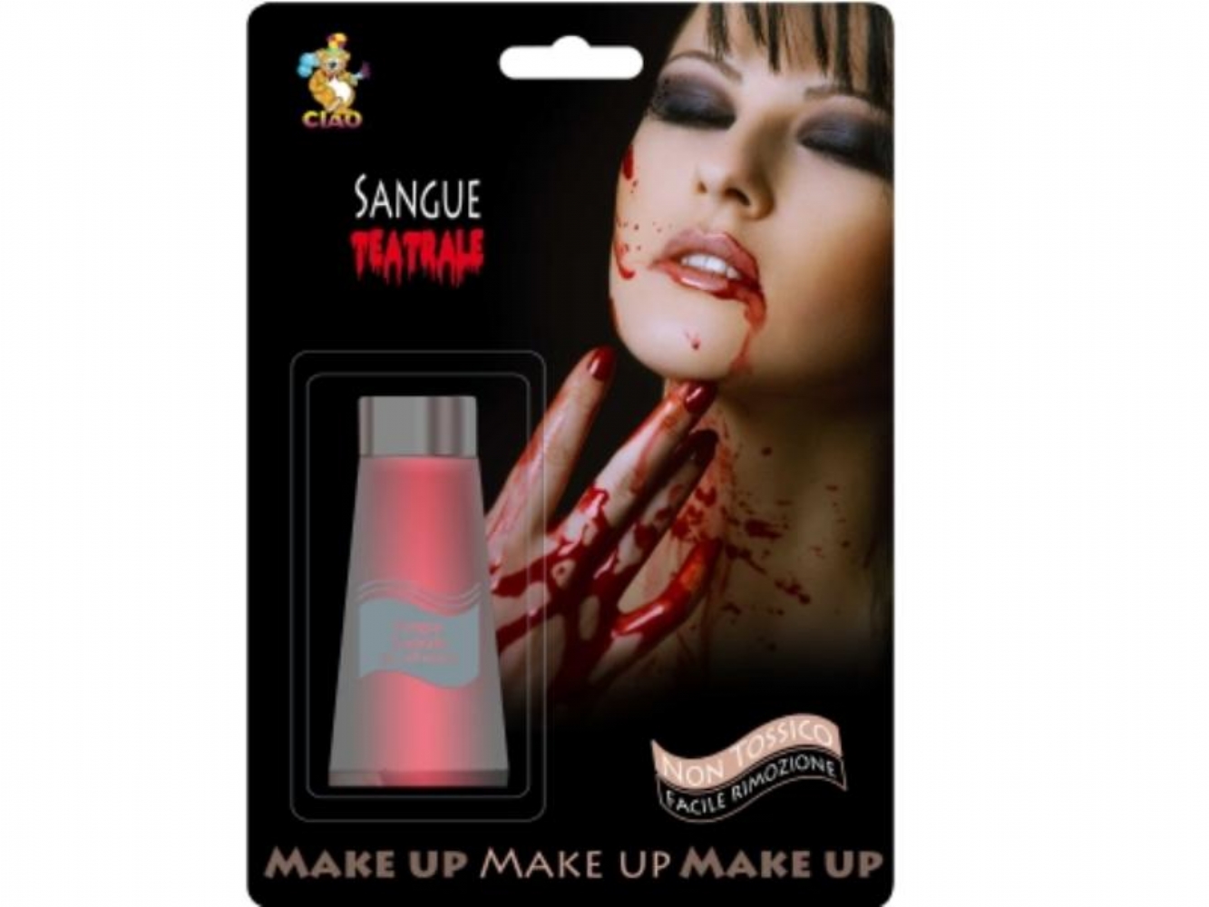 Sangue finto teatrale, comunemente usato per creare effetti speciali nel trucco artistico, in particolare per occasioni come Halloween, feste a tema o produzioni teatrali.