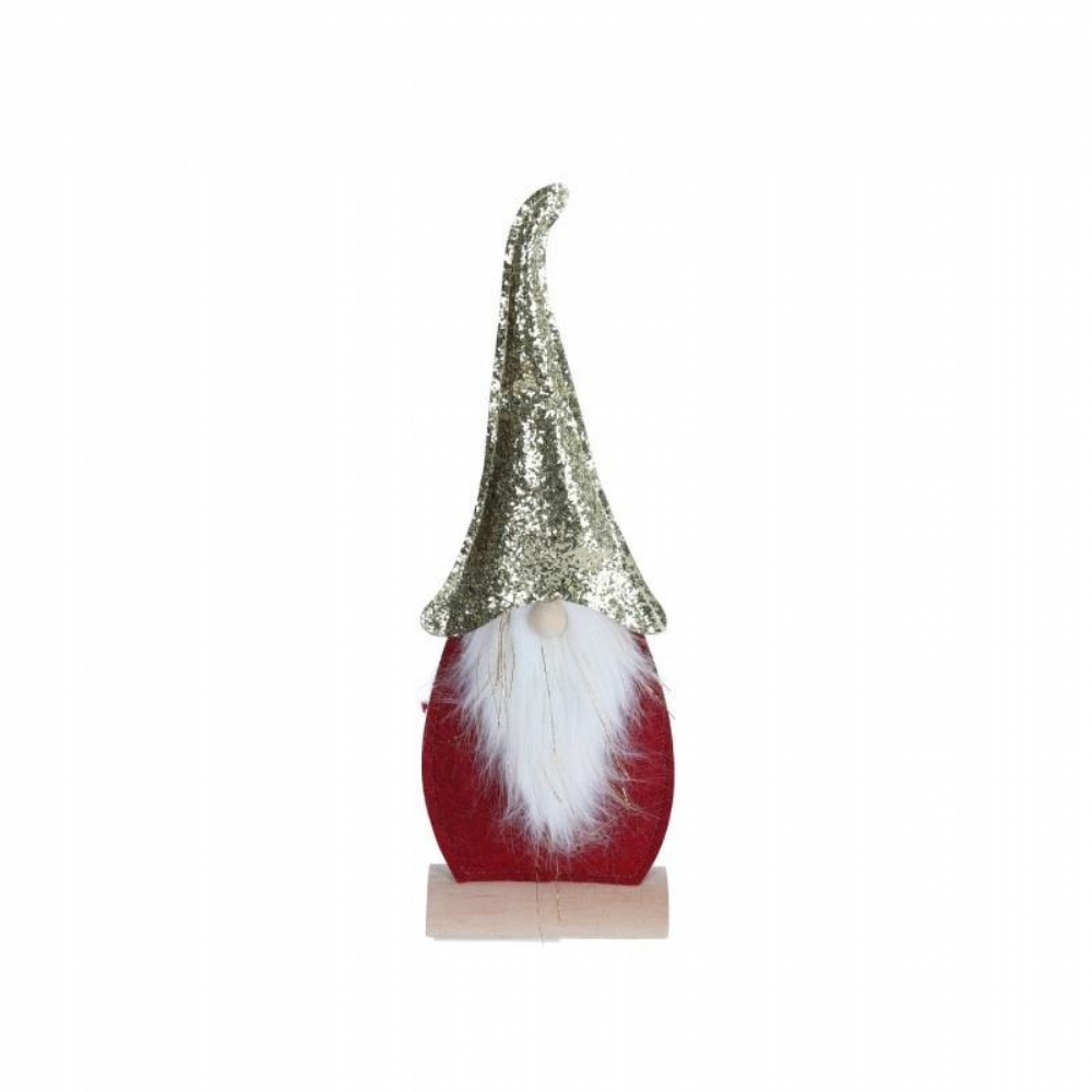 Gnomo Decorativo Natalizio in Feltro Rosso con Cappello Glitter Oro 40 cm Gnomo decorativo con corpo in tessuto feltro e cappello glitter oro, ideale per salotto, ingresso, sotto l’albero o come centrotavola. Perfetto da integrare con altre decorazioni natalizie.