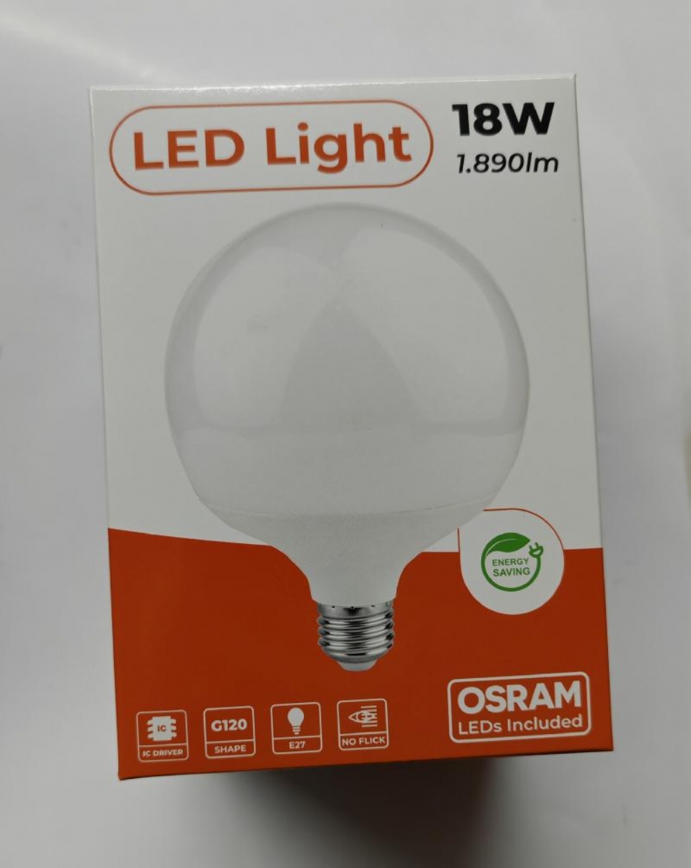 Lampadina Globo Osram Led Light G12018W 120 X 160mm 1890lm 4000K e 2700K Ideale per la sostituzione semplice e diretta di lampade a incandescenza o a risparmio energetico. La lampadina a globo è fatta per brillare, cioè è destinata a luoghi in cui la lampadina è visibile e può essere abbinata a diversi stili di lampade, solitamente a soffitto. Potenza: 18W, equivalente a circa 100W delle vecchie lampadine a incandescenza. Luminosità: 1.890 lumen. Efficienza: 105 lm/W. Durata: Oltre 30.000 ore. Disponibilità: - luce 4000K - luce 2700K
