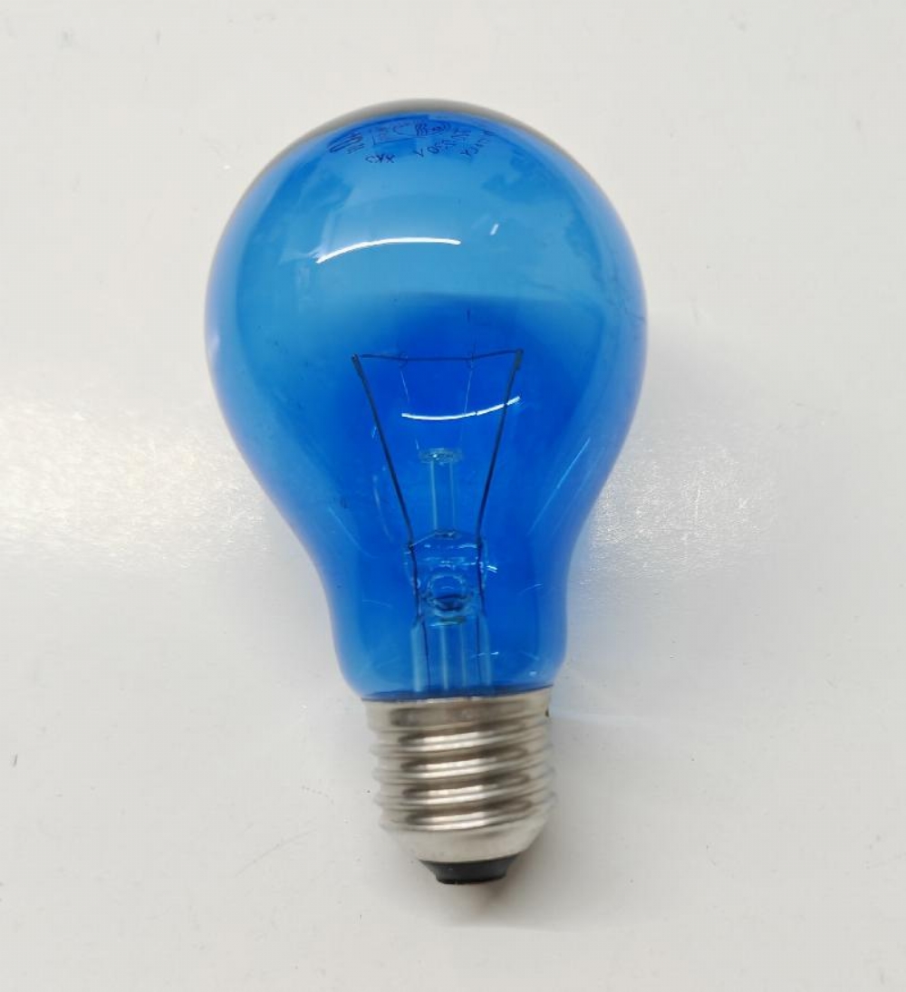 Lampadina a incandescenza colorata blu con attacco a vite E27.