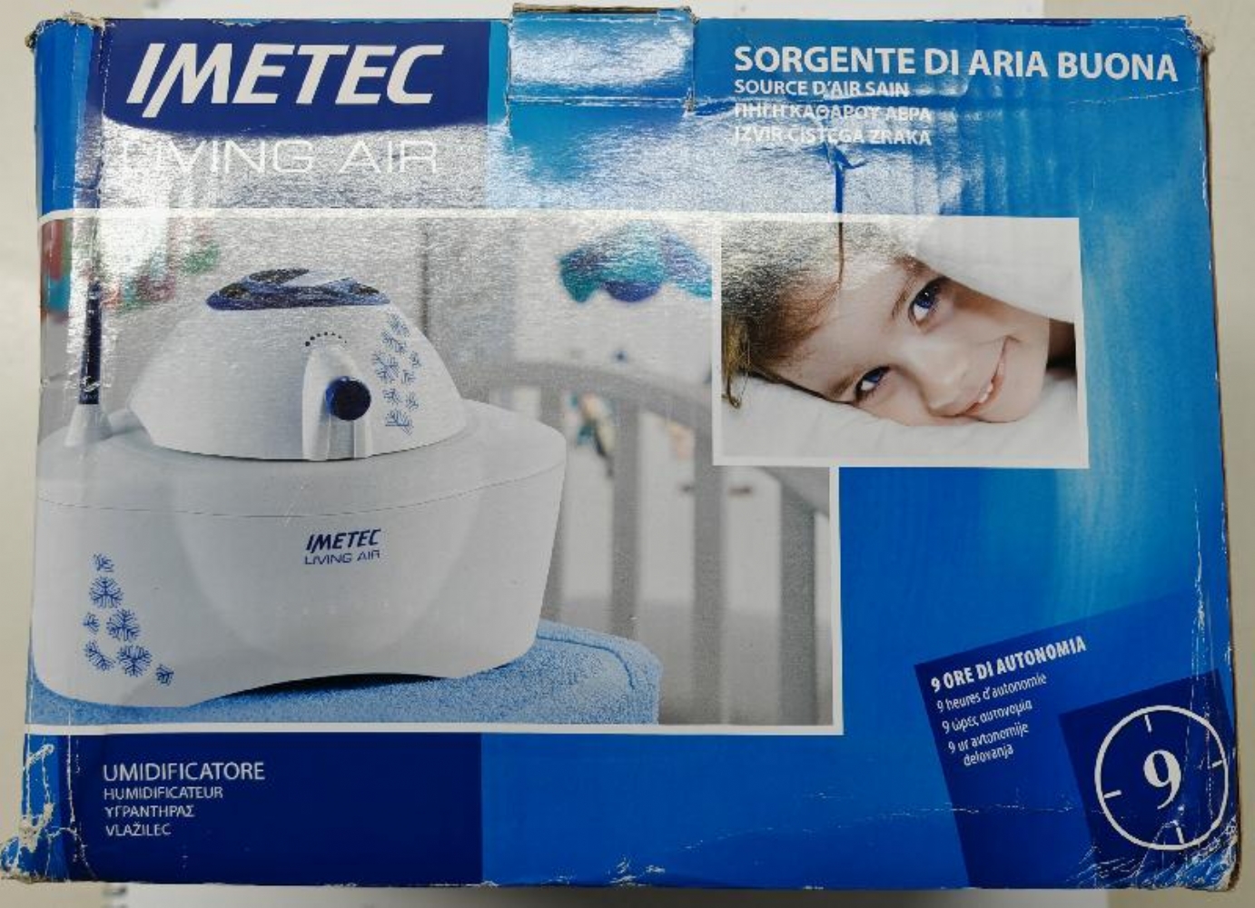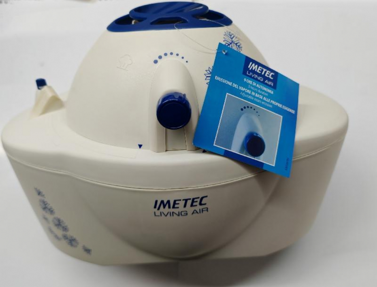 Imetec Umidificatore Ultrasuoni Living Air HU 100 Vaporizzatore fino 9 Ore di Autonomia Capacita 3 Litri L’umidificatore Imetec Living Air HU-100 è compatto ed elegante e ben si adatta a tutti gli ambienti della casa, anche i piccoli. Ha un'autonomia fino a 9 ore di funzionamento e una capacità di 3 litri. L’umidificatore Imetec aiuta a ristabilire il giusto tasso di umidità in ogni ambiente grazie alla possibilità di regolare la quantità di vapore emessa nell'aria. Per rendere la tua casa ancora accogliente è dotato di una vaschetta che permette di diffondere le essenze e le profumazioni preferite. L’umidificatore Imetec ha un doppio serbatoio isolante con dispositivo di sicurezza antiapertura e un’astina galleggiante per tenere sotto controllo il livello dell'acqua. PRODOTTO NUOVO, LA SCATOLA è UN PO' ROVINATA