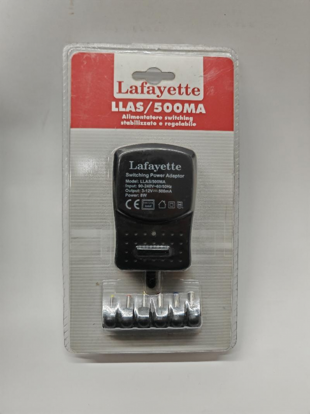 Lafayette Marcucci Alimentatore switching stabilizzato e regolabile 500mA LLAS 500 Alimentatore switching universale Lafayette LLAS/500MA. È progettato per alimentare una varietà di piccoli dispositivi elettronici.