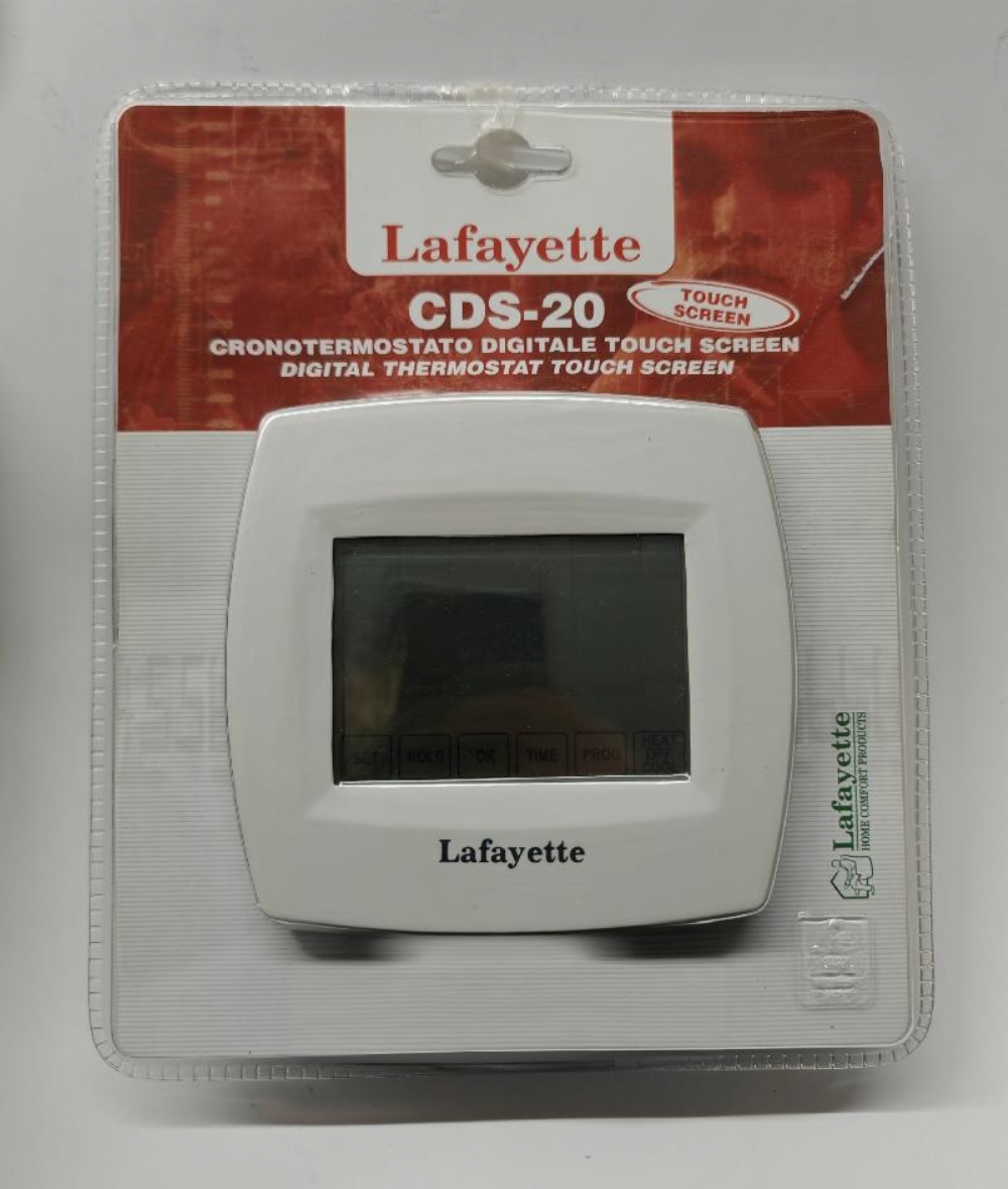 Lafayette Marcucci Cronotermostato DigitaleTouch Screen CDS-20 Cronotermostato digitale programmabile con display Lcd touch screen. Ideale per sistemi di riscaldamento o condizionamento.