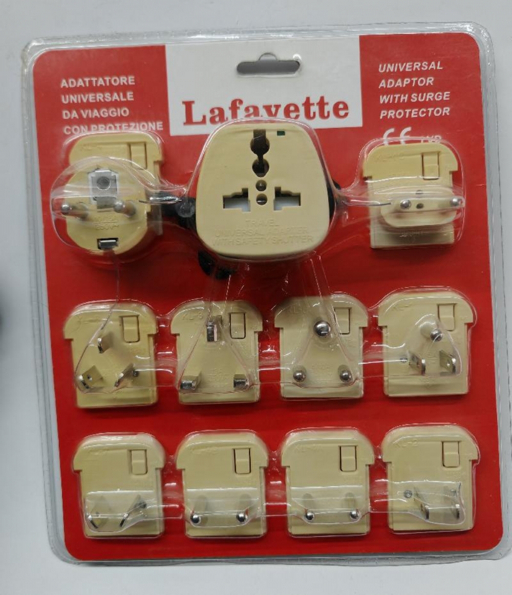 Lafayette Marcucci Adattatore Universale da Viaggio con Protezione Adattatore universale da viaggio marca Lafavette con protezione da sovratensioni.