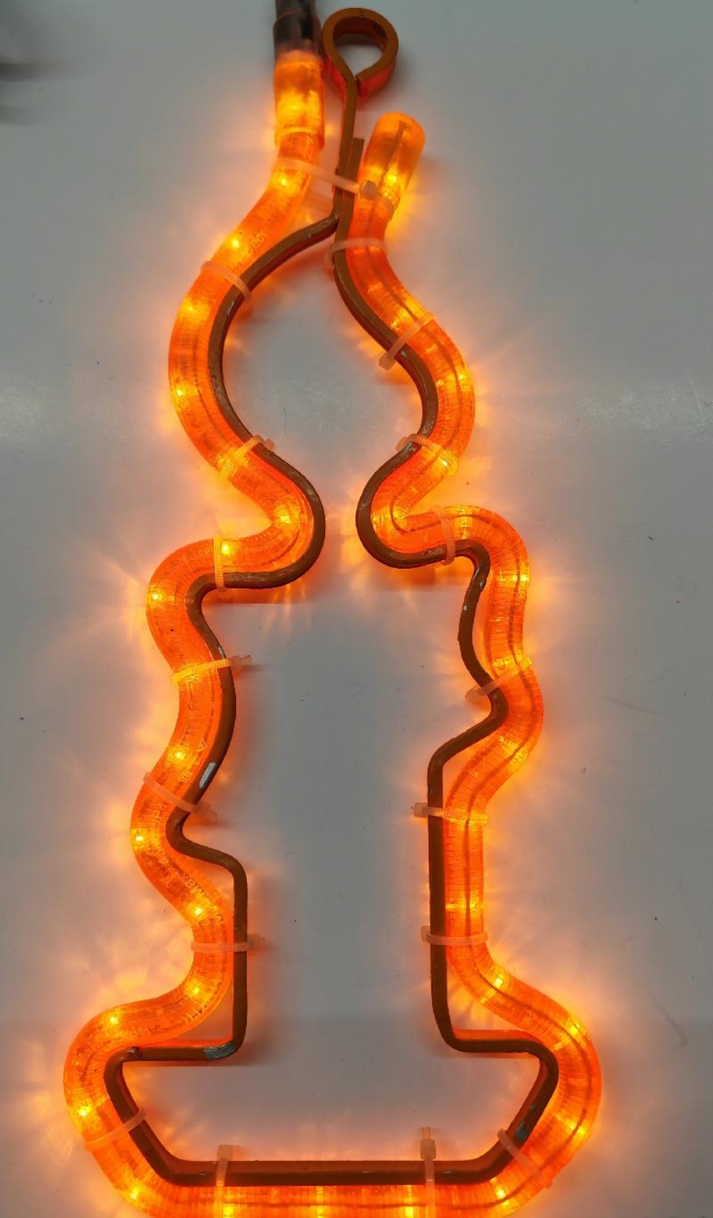 Cordone Tubolare Luce Neon Arancione Natale Struttara in Ferro Forma di Candela Vintage da Esterno La luce è sagomata come una candela di Natale stilizzata, con un gancio per appendere e un cavo di alimentazione nero con una spina di tipo F (Schuko) standard europea. Si tratta di un tubo luminoso flessibile, di colore arancione, sagomato per formare una decorazione. Utilizzo: È progettata per uso decorativo, tipicamente per festività come il Natale, adatta per essere appesa all'aperto o in ambienti interni. |