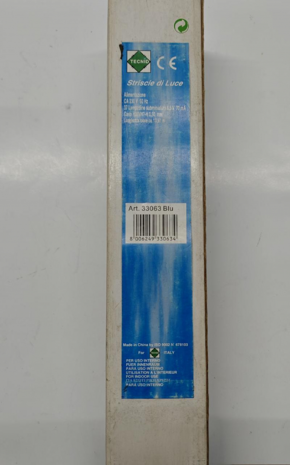 Luci Natale Catena 37 Lampadine Subminiature 6,5V Blu per Uso Interno Allungabile Si tratta di una striscia di luci blu. Il prodotto è progettato esclusivamente per uso interno.Richiede un'alimentazione di 230V ed è composto da 37 lampadine subminiature da 6.5V. La lunghezza totale della striscia è di circa 13.5 metri. |