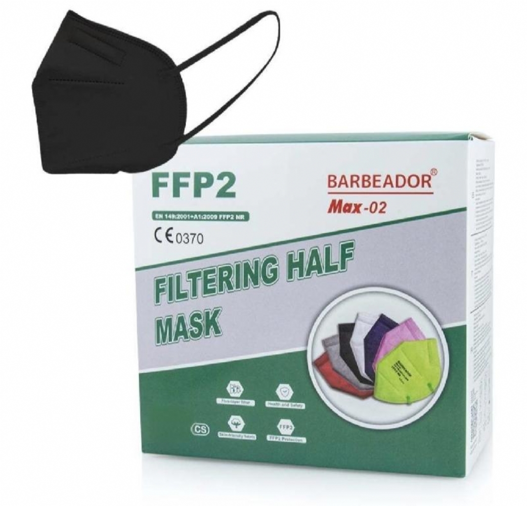 Mascherina Barbeador Max 02B Protettiva Monouso FFP2 Nera Confezione 10 Pezzi La mascherina FFP2 ad alta protezione è raccomandata dall'Organizzazione Mondiale della Sanità per la protezione della salute e può essere utilizzata come misura protettiva per controllare la diffusione di alcune malattie respiratorie come l'infezione da Coronavirus Covid - 19. Realizzata con un tessuto delicato sulla pelle e un filtro a cinque strati. Norma di prodotto: EN 149: 2001+A1:2009