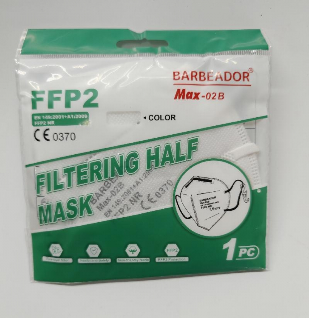 Mascherina Barbeador Max 02B Protettiva Monouso FFP2 Bianca Confezione 10 Pezzi La mascherina FFP2 ad alta protezione è raccomandata dall'Organizzazione Mondiale della Sanità per la protezione della salute e può essere utilizzata come misura protettiva per controllare la diffusione di alcune malattie respiratorie come l'infezione da Coronavirus Covid - 19. Realizzata con un tessuto delicato sulla pelle e un filtro a cinque strati. Norma di prodotto: EN 149: 2001+A1:2009