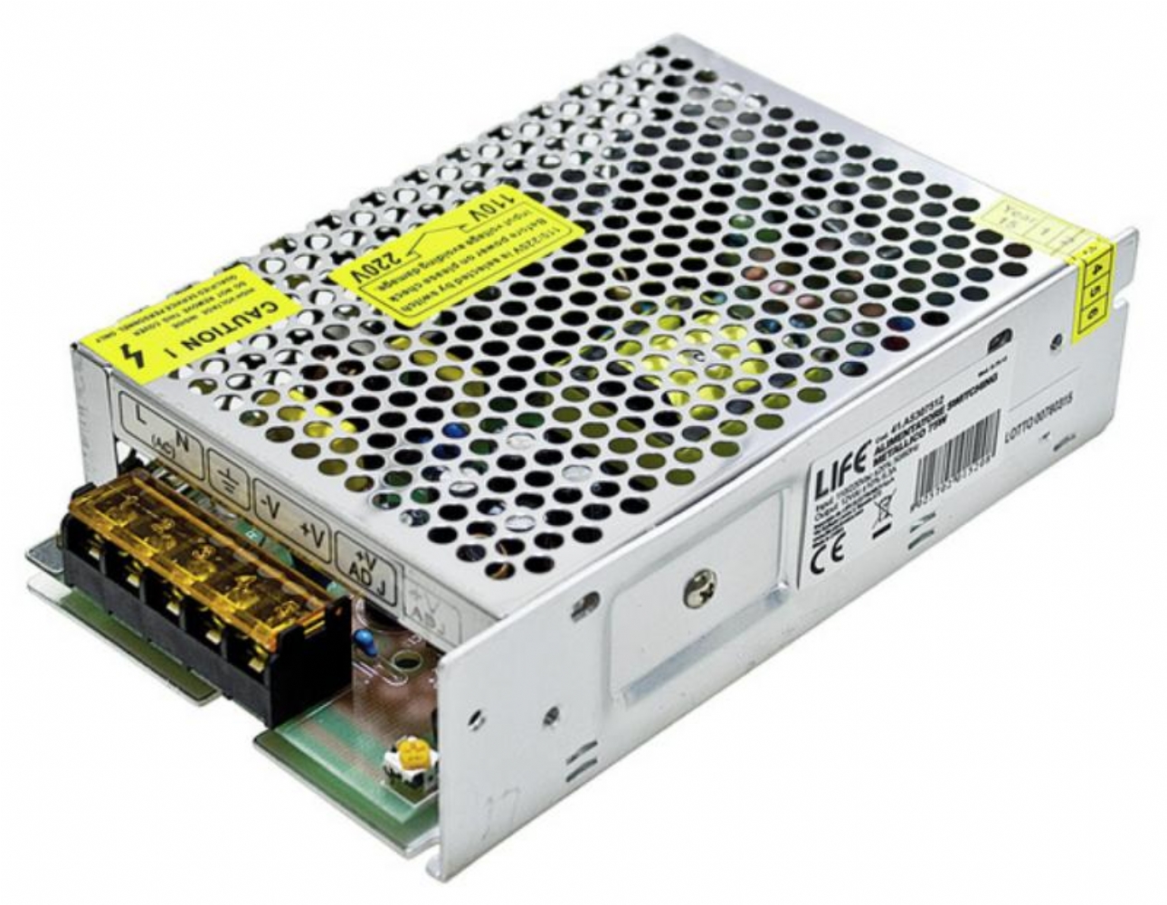 Life 41.AS307512 Alimentatore Switching Metallico 75W 12V 6,3A INPUT 110-220Vac Tensione in ingresso: 110-220Vac +/-20% / 50-60 Hz Tensione e corrente in uscita: 12Vdc +/-10% / 6,3A Potenza d'uscita: 75W Efficienza: nd Connettori: morsetti a vite Temperatura di lavoro: -10 °C / +50°C Serie: ALIMENTATORI SWITCHING CONTENITORE METALLICO Protezioni: Cortocircuito, sovratensione, surriscaldamento e sovraccarico. Dimensioni:158x98x40mm |