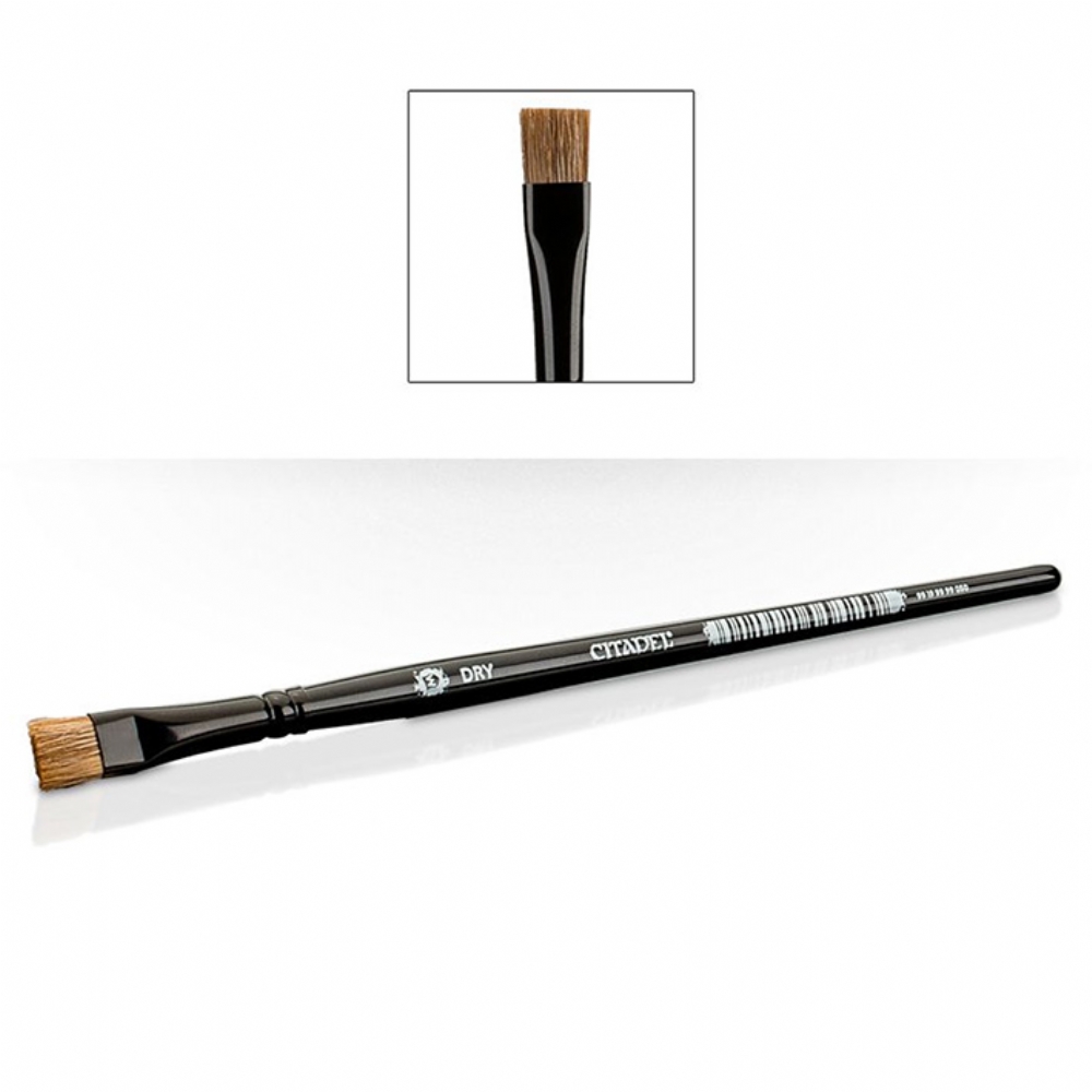 Piccolo pennello M Dry medium della Citadel Colour per dipingere le miniature di Warhammer 4000 o Age of Sigmar. Questo pennello medio (M Dry) è composto da una mescolanza di setole di