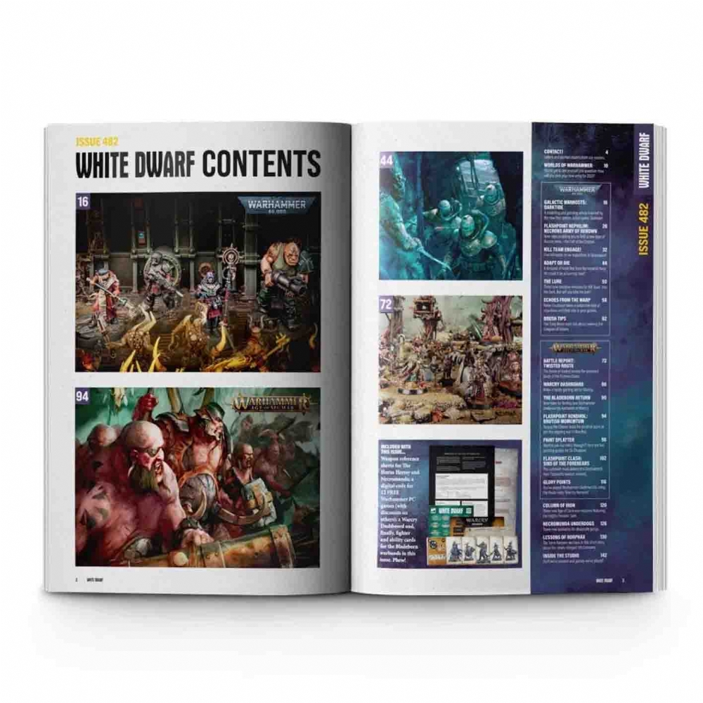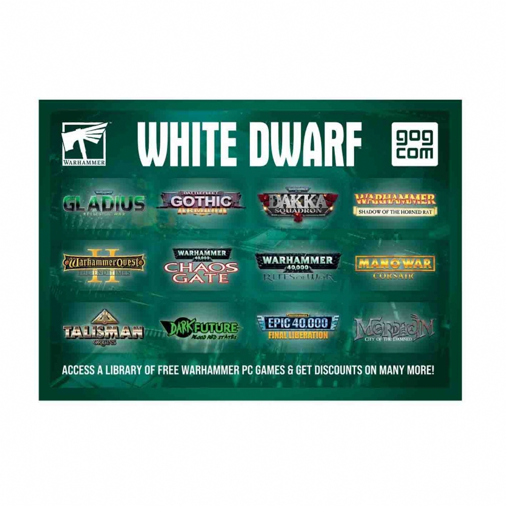 White Dwarf issue 482 di Novembre 2022 è la rivista di miniature Citadel Warhammer, in lingua Inglese, più venduta al mondo e i suoi contenuti supportano tutti i prodotti Games Workshop. Tra i vari articoli e inserti presenti in questo numero di White Dwarf troverai: - Warcry Battle Report: The First Clash in the Heart of Ghur! - Painting the Leagues of Votann; - Kitbashing Darktide Models; - New Necrons Army of Renown; - Exclusive Warcry Dashboard...e molto altro! Questo giornale esce ogni mese e si occupa di Warhammer 40,00, Warhammer Age of Sigmar, Blood Bowl, Warhammer Underworlds, Kill Team, War Cry, dei prodotti hobbistici Citadel e di un sacco di altri prodotti Games Workshop. Contiene inoltre notizie, regole addizionali, consigli e suggerimenti e per questo è molto apprezzato dagli appassionati. CODICE PRODOTTO: WD11-60 ATTENZIONE: Gioco per 12+ anni, non adatto a bambini di età inferiore a 36 mesi. |