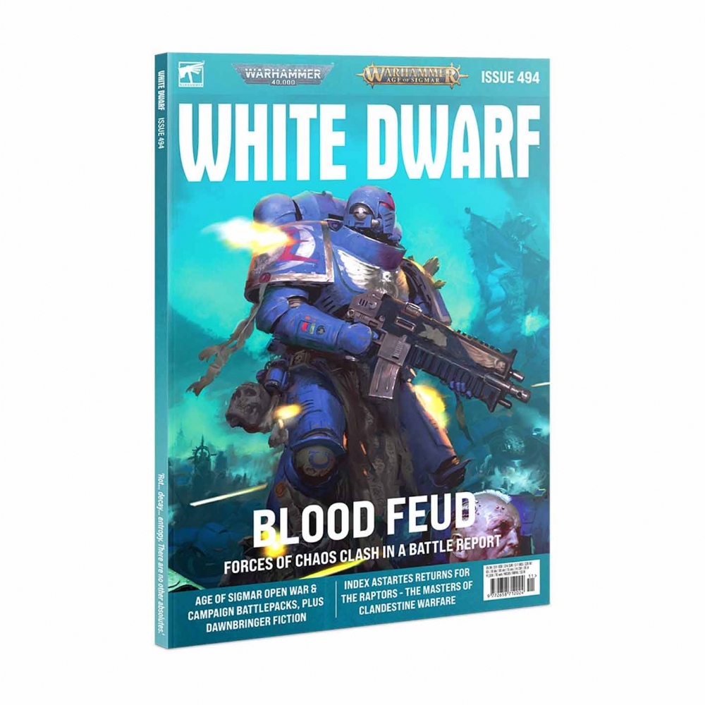 White Dwarf issue 494 di Novembre 2023 è la rivista di miniature Citadel Warhammer, in lingua Inglese, più venduta al mondo e i suoi contenuti supportano tutti i prodotti Games Workshop. Il numero di questo mese di White Dwarf è pieno di fantastici contenuti di Warhammer come sempre. L'Index Astartes ritorna per i Raptors, portando nuove regole della Crociata per questi furtivi Space Marines. Il Bunker contiene altre notizie dalla campagna Slidecrown Sundering. E altrove c'è uno scontro tra comandanti del caos in un rapporto di battaglia di Warhammer 40,000, e una puntata di Brush Tips dove il team di 'Eavy Metal si scontra per creare il miglior corsaro Aeldari. L'inserto di cartone di questo mese include sei mappe e scenari Open War per Warhammer Age of Sigmar. ATTENZIONE: Gioco per 12+ anni, non adatto a bambini di età inferiore a 36 mesi. |