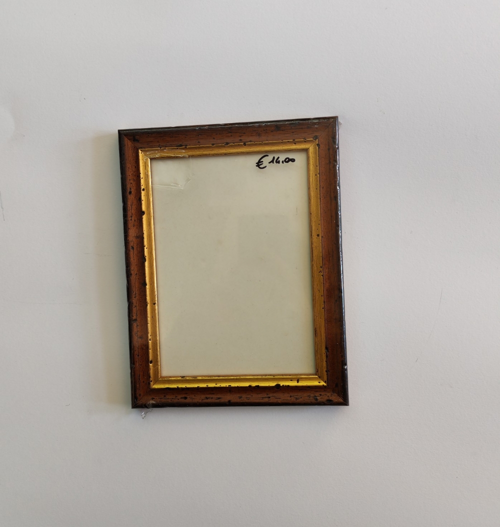 Cornice da appoggio ARTIGIANALE in legno effetto antico colore marrone con filo interno oro per foto formato 12x18/13x19 (max) cm