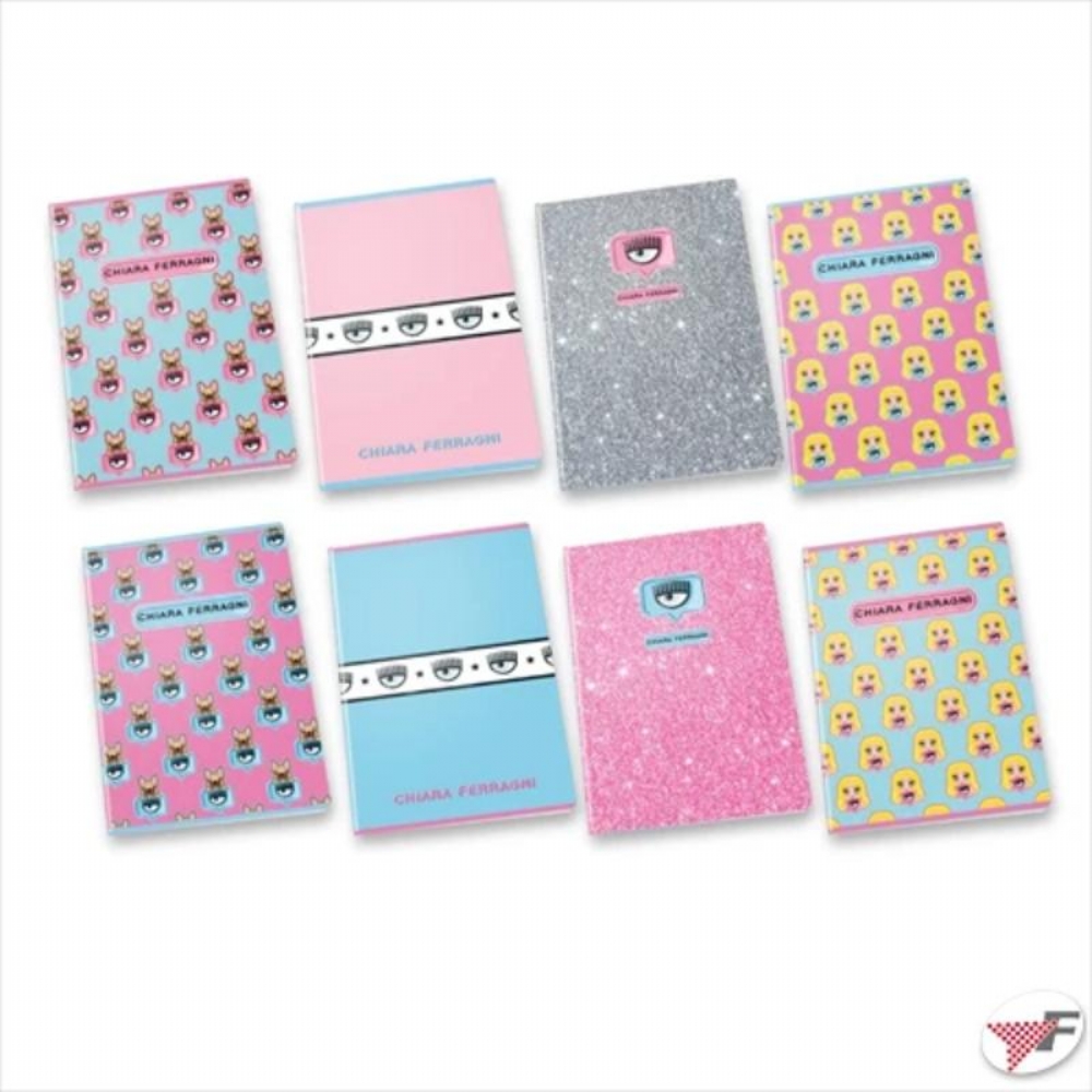 Quaderni A4 Chiara Ferragni 1R 80gr Stampa Logo Bambolina Cane Glitter Azzurro Rosa colori assortiti.Qualità e resistenza.Misure: Altezza 20,5 cm - Larghezza 14,8 cm - Profondità 0,5 cm.