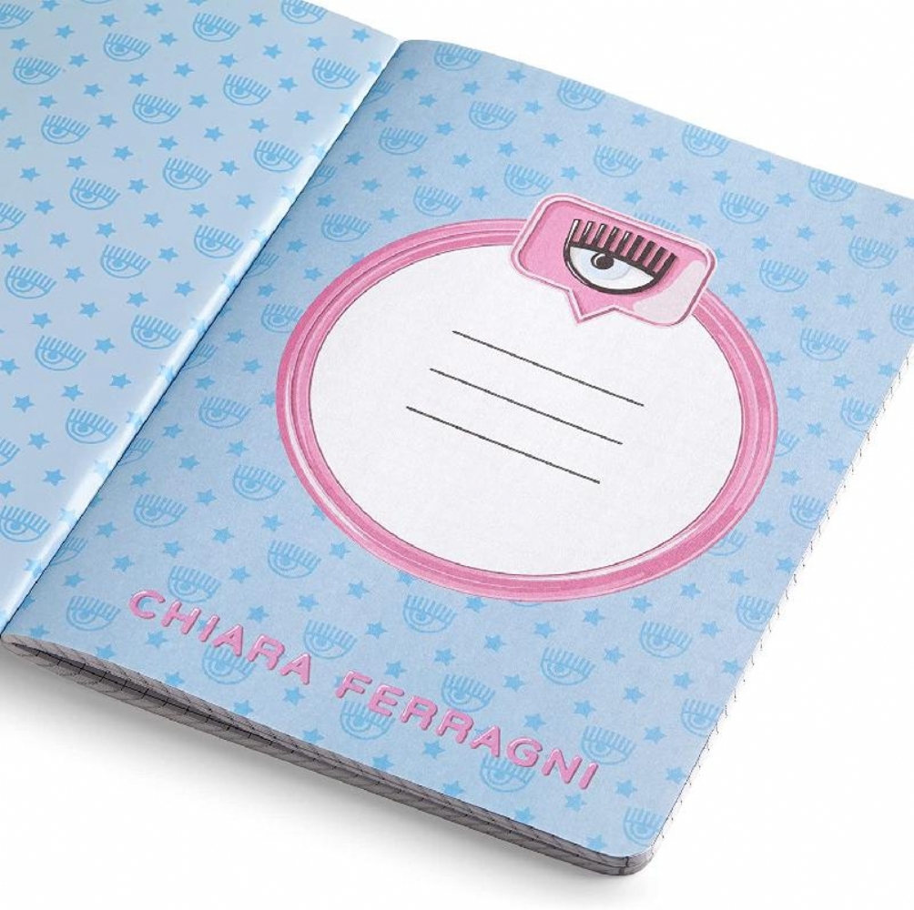 Quaderni A4 Chiara Ferragni 1R con Margine 80gr Stampa Logo Bambolina Cane Glitter Azzurro Rosa colori assortiti.Qualità e resistenza.Misure: Altezza 20,5 cm - Larghezza 14,8 cm - Profondità 0,5 cm.