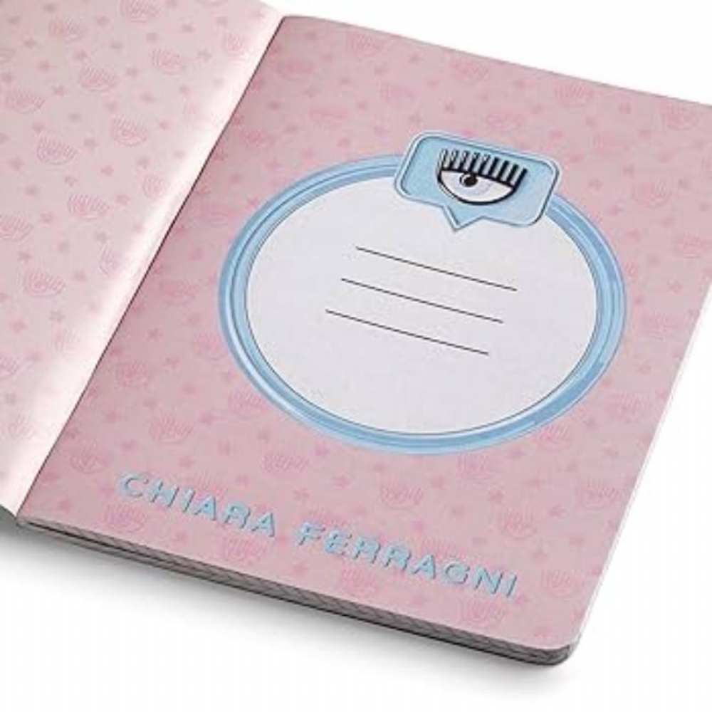 Quaderni A4 Chiara Ferragni 5M 80gr Stampa Logo Bambolina Cane Glitter Azzurro Rosa colori assortiti.Qualità e resistenza.Misure: Altezza 20,5 cm - Larghezza 14,8 cm - Profondità 0,5 cm.