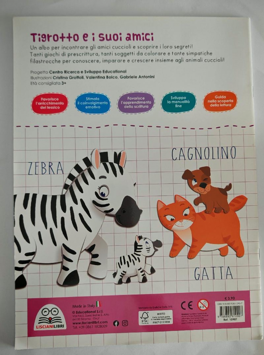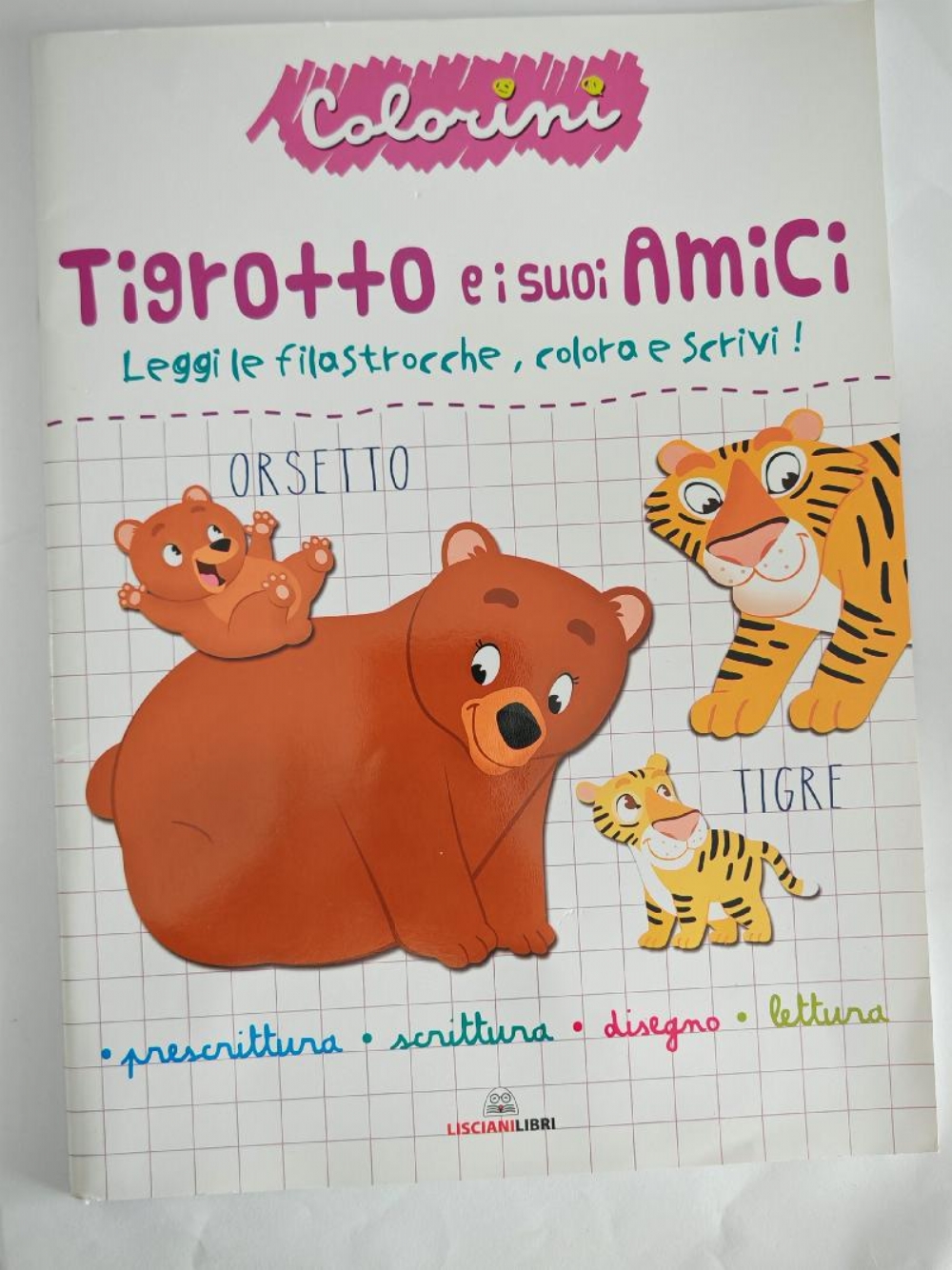 Tigrotto e i suoi Amici Scrittura Disegno Lettura Album da Colorare per Bambini Copertina Flessibile Lisciani Libri Leggi le filatrocche , colora e scrivi! Prescrittura, scrittura, disegno, lettura. Quaderno operativo educativo intitolato "Tigrotto e i suoi amici" della collana Colorini, edito da Liscianilibri. Scopo: Il libro è progettato per introdurre i bambini dai 3 anni in su alla lettura, alla scrittura e al disegno attraverso attività ludiche. Contenuto: Include filastrocche, esercizi di pregrafismo e attività di colorazione per sviluppare la manualità fine. Personaggi: I protagonisti sono Tigrotto e i suoi amici, utilizzati anche per insegnare regole di convivenza e rispetto dell'ambiente. Dettagli: Il volume conta 31 pagine a colori. Editore: Lisciani Libri Lingua : Italiano Collana: Colorini Lunghezza stampa : 31 pagine ISBN: 9788892810907 EAN: 9788892810907 Copertina : Flessibile Stato del Prodotto: Nuovo |