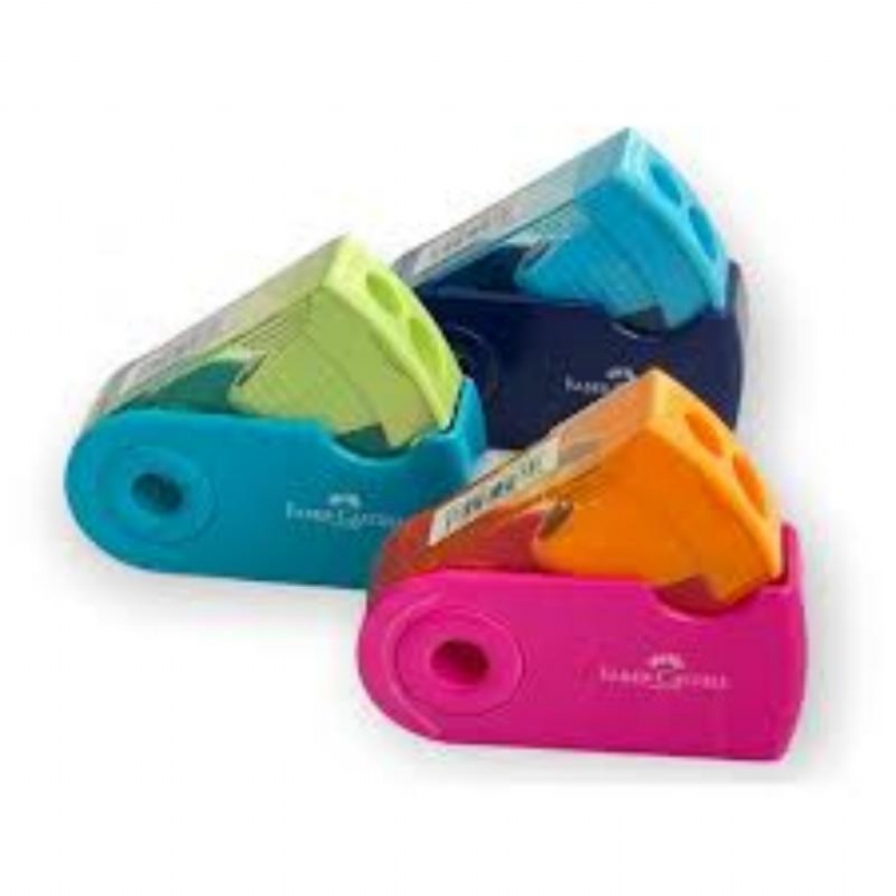 Temperamatita Faber Castell Temperino 2 Fori con contenitore ventaglio Colori Assortiti