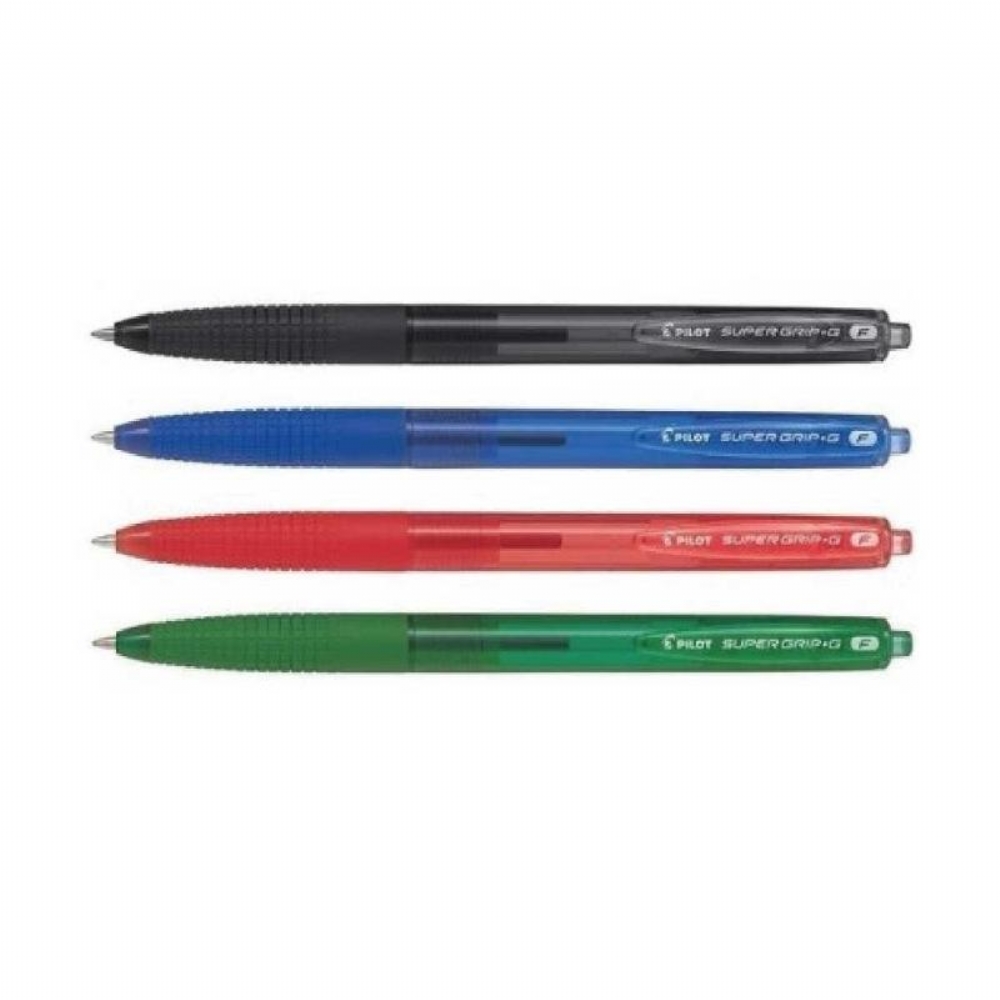Penna biro a scatto Pilot SuperGrip Verde Rosso Blu Nero Fine Medium