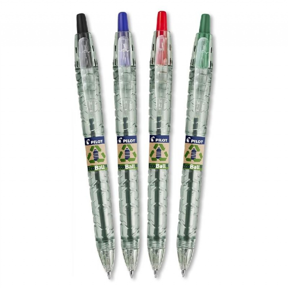 Penna Sfera a Scatto Pilot Ecoball Punta Media Penna a sfera con meccanismo a scatto che offrono un'alternativa ecologica alle soluzioni tradizionali. Realizzate con almeno l'86% materiali riciclati e progettate per garantire una scrittura fluida e resistente. Colore: nero, blu