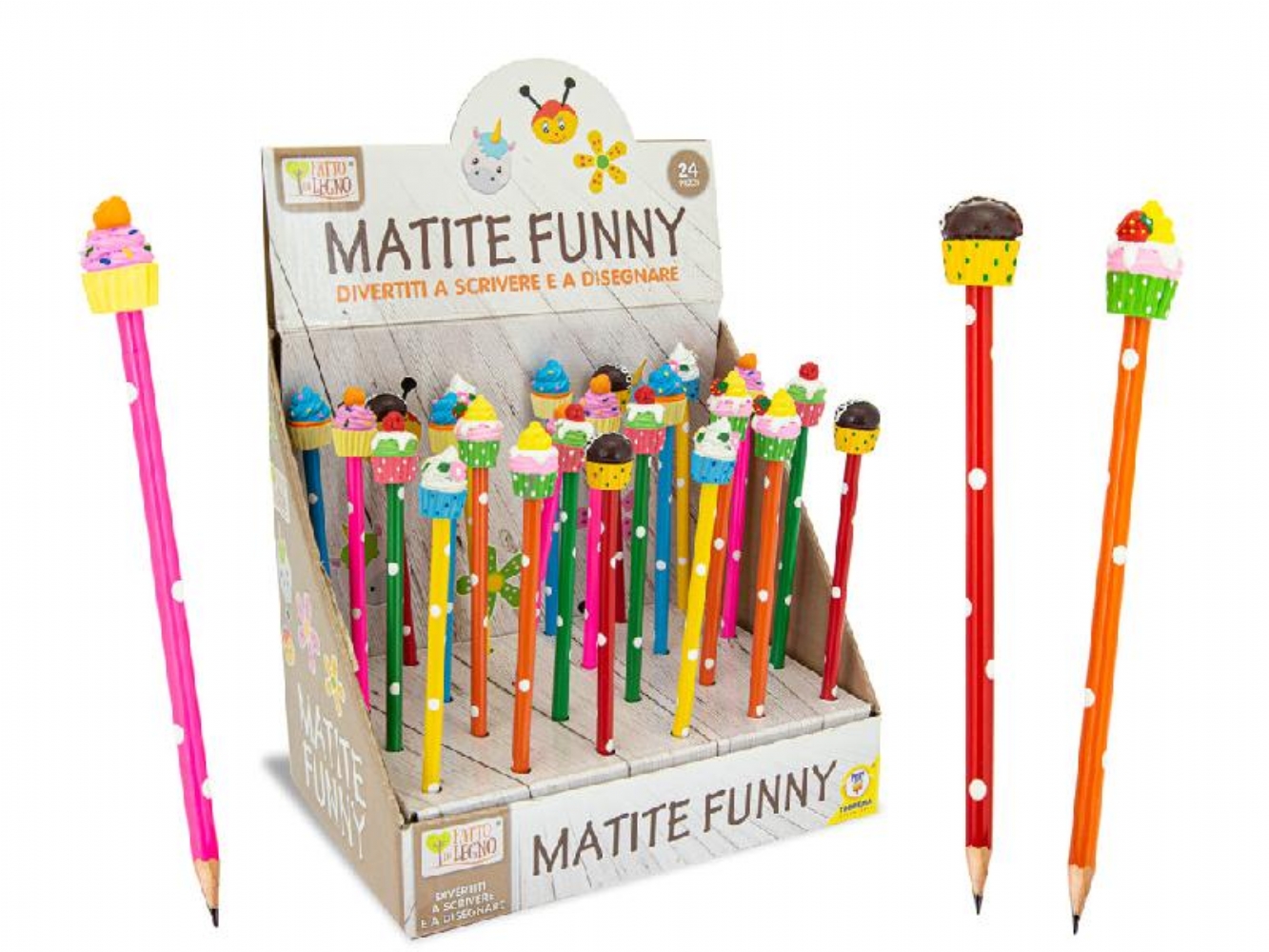 Matite Funny CupCake Fatto di Legno Teorema Fantasie Assortite Sono matite in legno con mina HB,