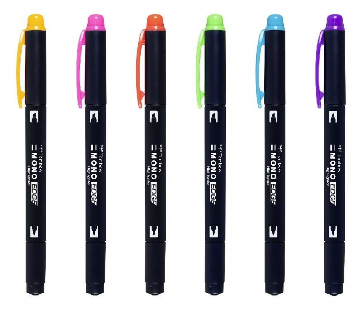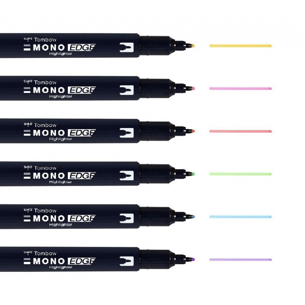 Evidenziatori a Doppia Punta Mono Edge Tombow Hanno una doppia punta: una a scalpello larga ( 3,8 mm ) e una a proiettile extra fine ( 0,5 mm o 0,8 mm a seconda del modello ). L' inchiostro a base d'acqua si asciuga rapidamente e non sbava . Sono ideali per evidenziare , sottolineare, prendere appunti e decorare agente e quaderni. Colori disponibili: azzurro, giallo, verde, viola , rosso, rosa