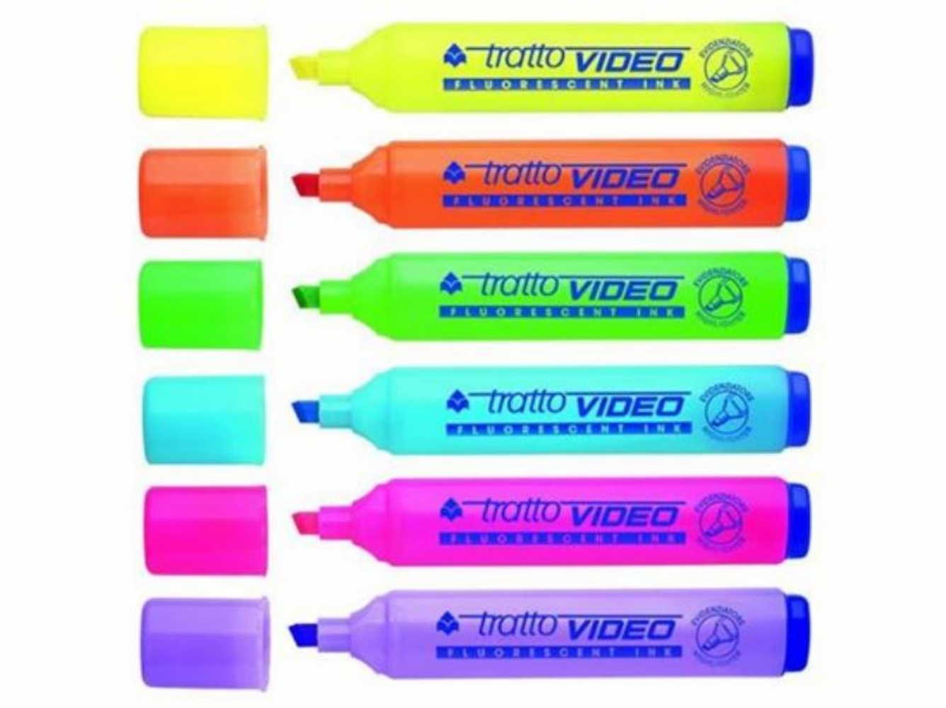 Tratto Video Evidenziatore Fluo Giallo Verde Fucsia Viola Azzurro Arancione