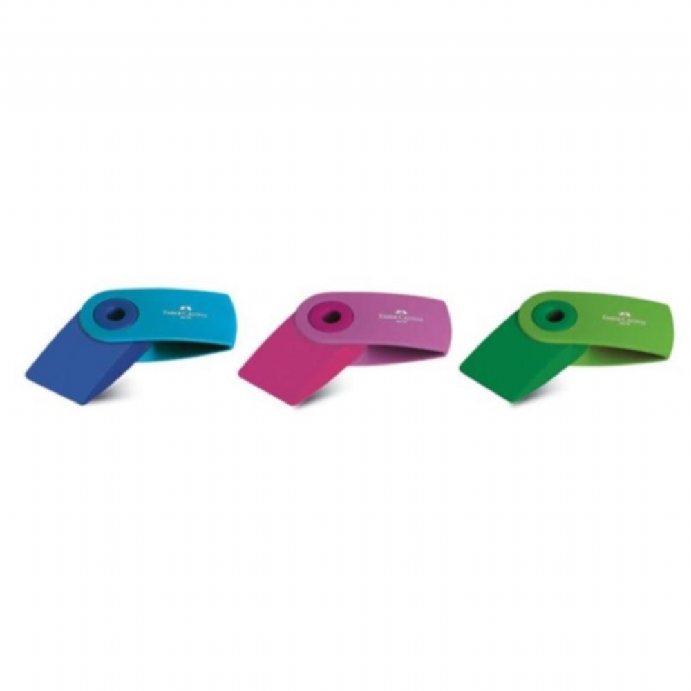 Gomma Faber Castell Sleeve Mini Eraser Ergonomica con Custodia Rosa Verde Azzurro
