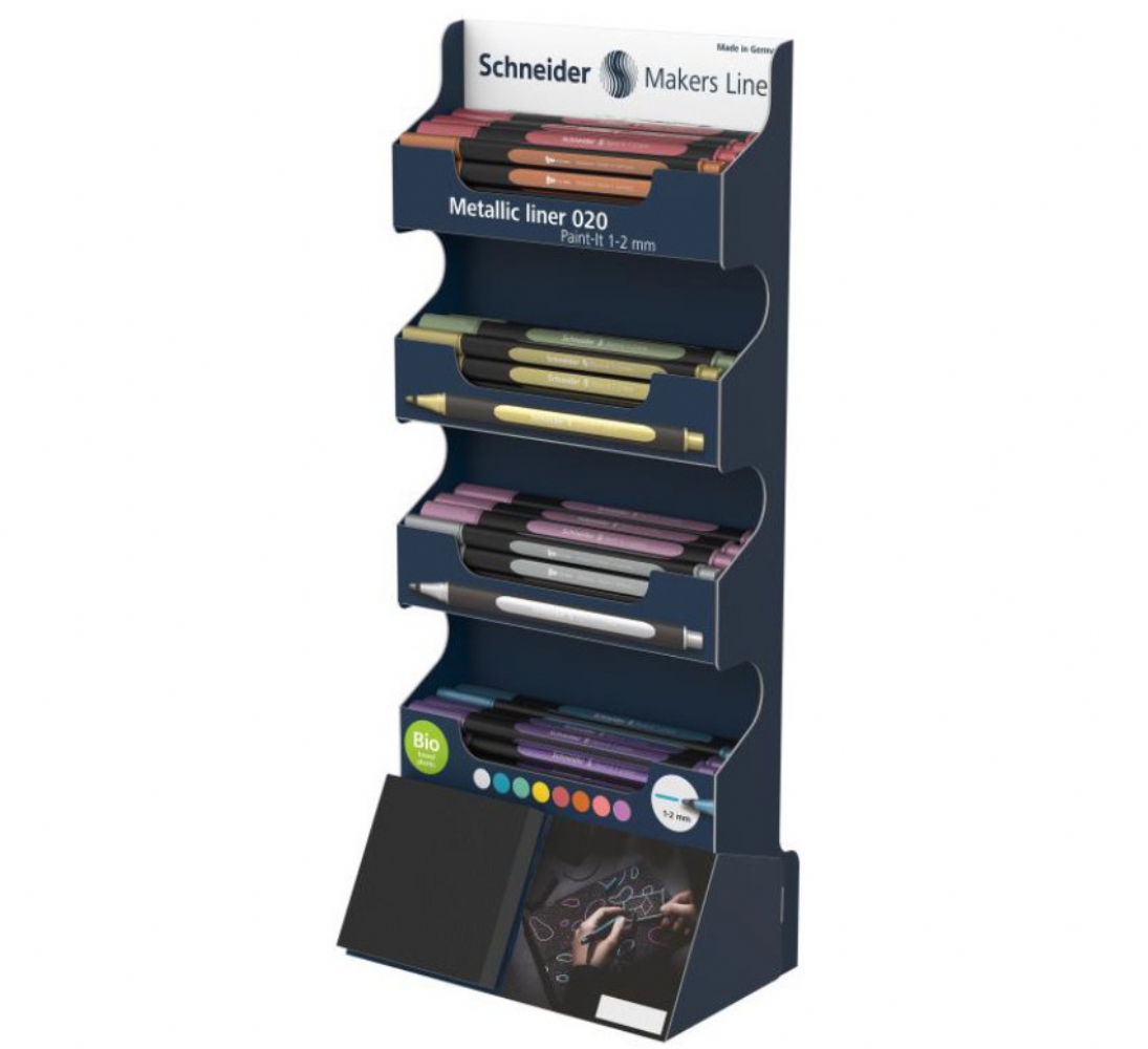 Pennarelli Schneider METALLIC LINER. 8 colori metallici a punta fina da 1-2 mm (varia in base all'inclinazione del pennarello) Venduti singolarmente Colori: silver metallic - argento polar blue metallic - blu gold metallic - oro vintage green metallic - verde vintage red metallic - rosso copper metallic - arancione rose metallic - lilla frosted violet metallic - viola |
