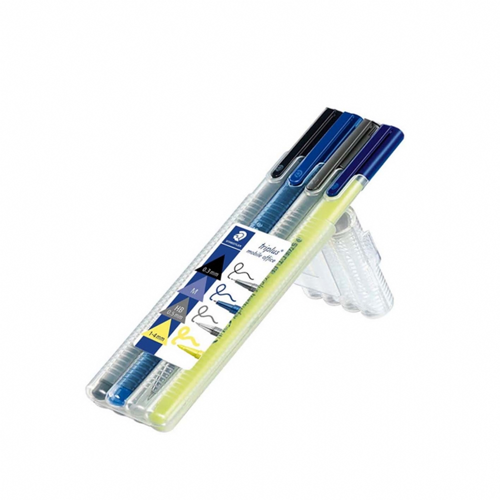 Multi-set scrittura STAEDTLER Triplus con pratica custodia porta-penne in plastica,