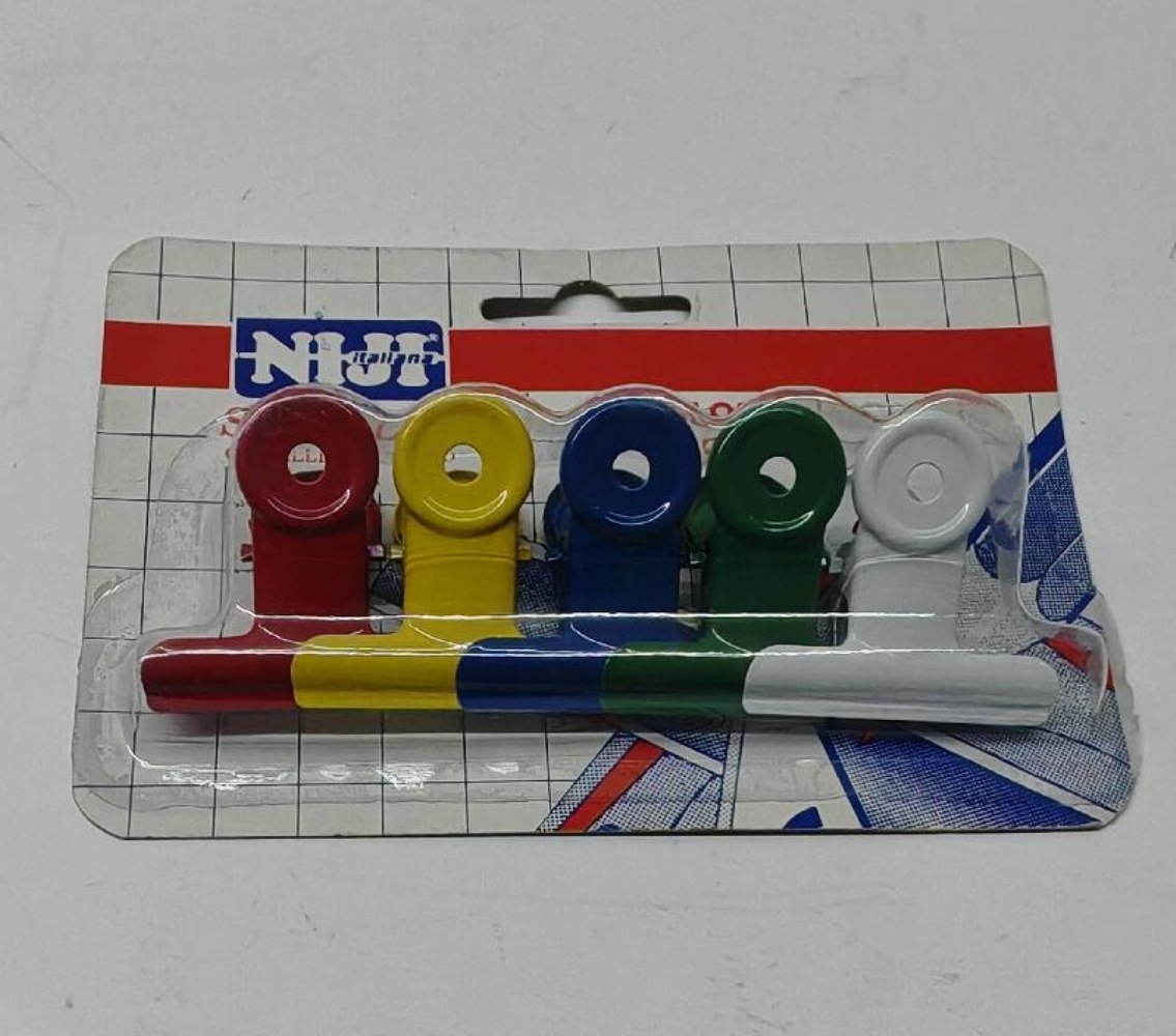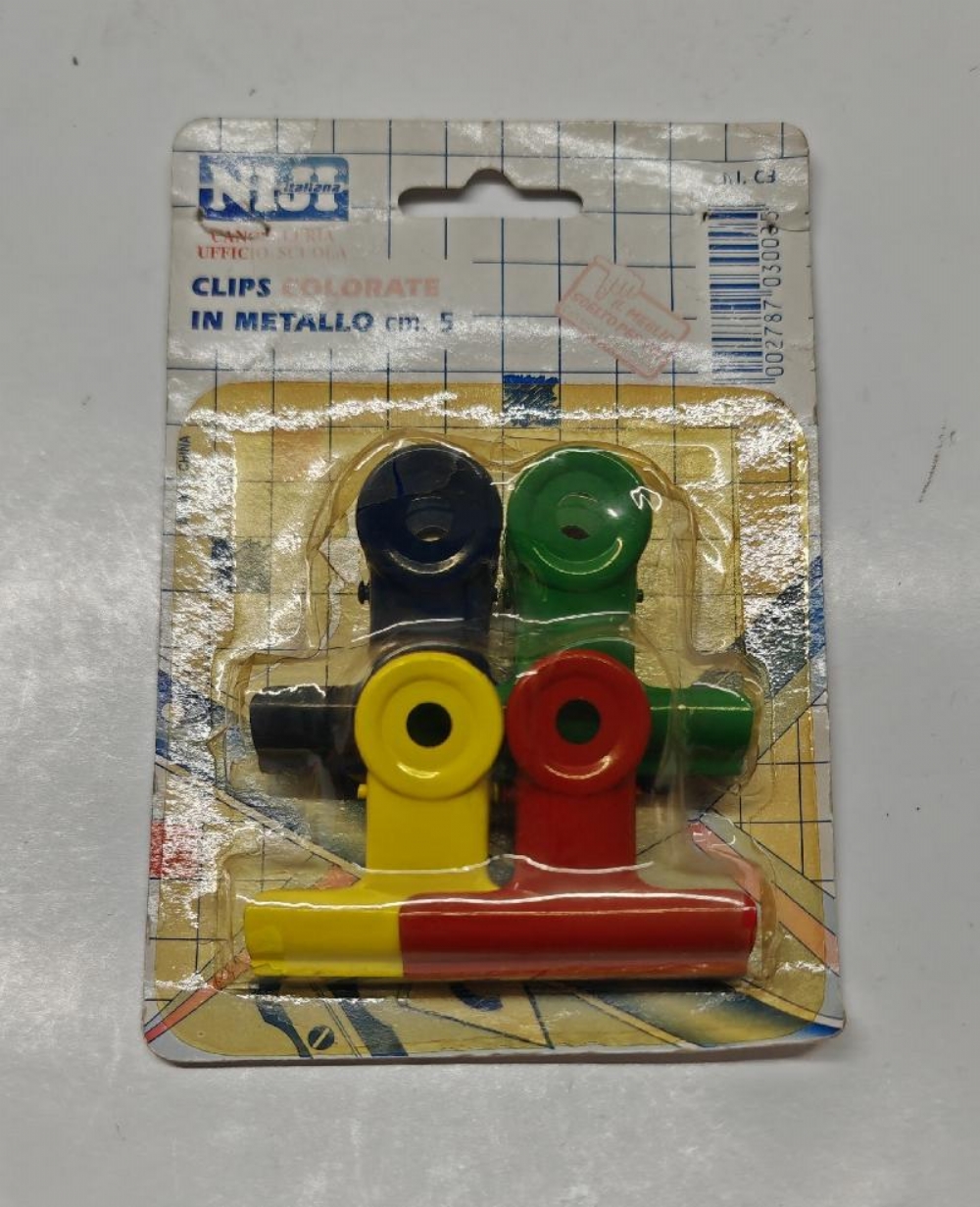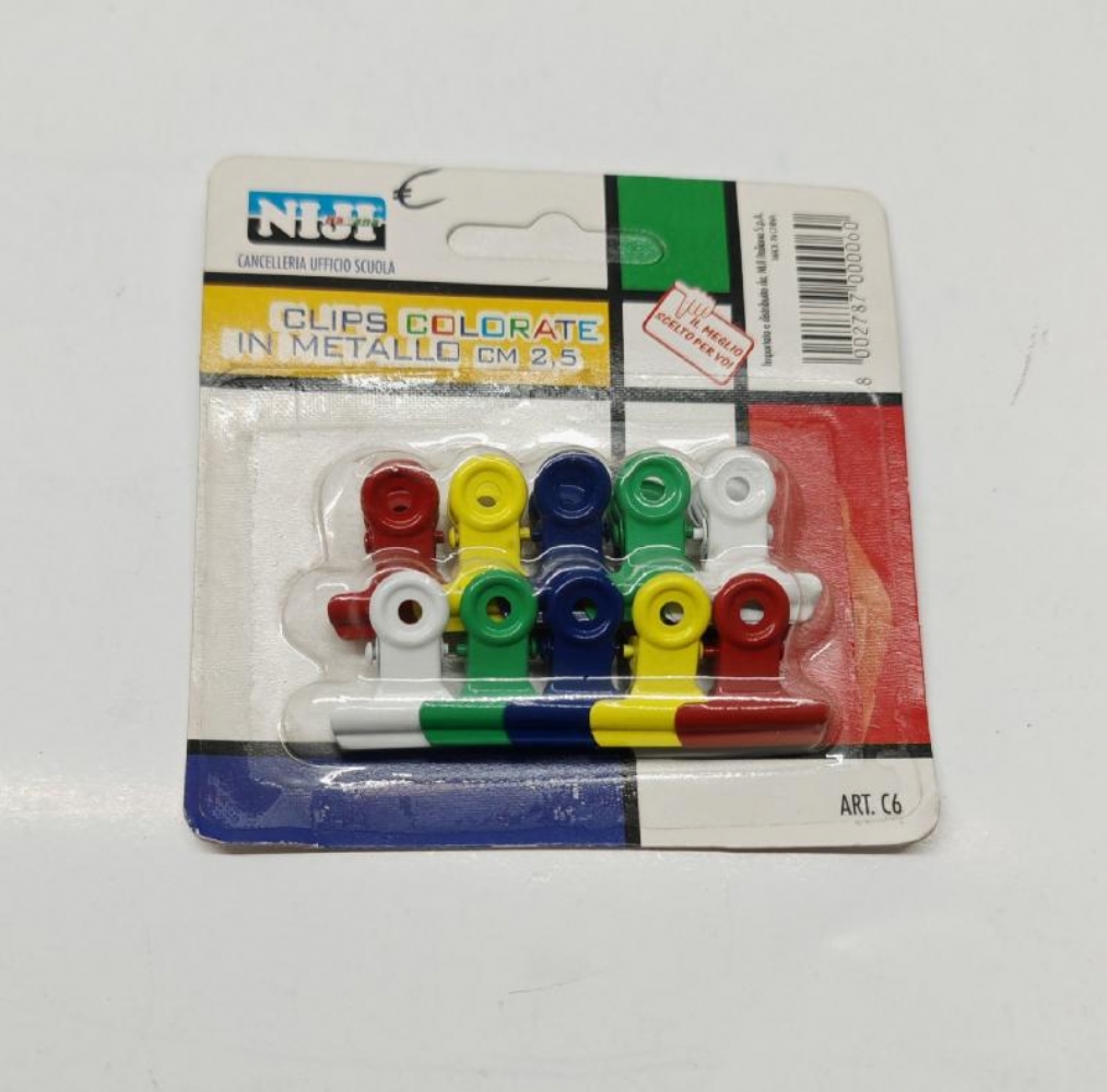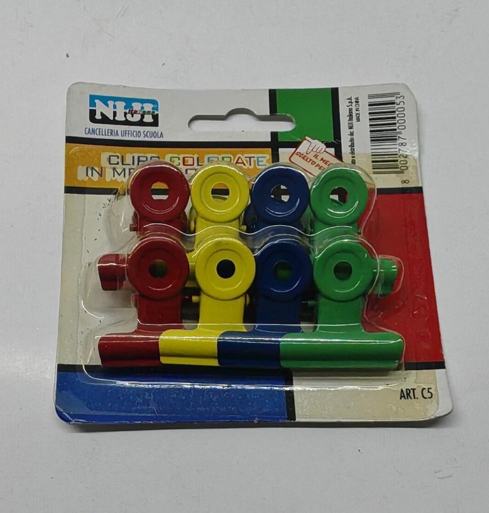 Molle Fermacarte in Metallo Verniciato Multicolor set da 2,5 - 3 - 4 - 5 CM Molle fermacarte sono realizzate in metallo di alta qualità verniciato, progettato per resistere all’uso quotidiano senza deformarsi. La struttura robusta garantisce affidabilità e lunga durata, rendendole ideali per ambienti professionali e domestici. Grazie alle molle ad alta tensione, queste binder clip assicurano un’eccellente capacità di serraggio. Mantengono saldamente uniti fogli, cartoncini, fotografie e materiali di vario spessore, evitando scivolamenti o dispersioni accidentali. Design sicuro e funzionale I bordi lisci e non taglienti offrono una presa confortevole e sicura, prevenendo graffi o tagli alle dita durante l’utilizzo. Ogni clip è dotata di un foro tondo integrato nelle maniglie, pensato per consentire di appenderle su pareti, porte, bacheche o pannelli, ottimizzando lo spazio di lavoro. Disponibilità: - set 10 pezzi molla 2,5 cm - set 8 pezzi molla 3 cm - set 5 pezzi molla 4 cm - set 4 pezzi molla da 5 cm IL PREZZO SI RIFERISCE AL SINGOLO SET.