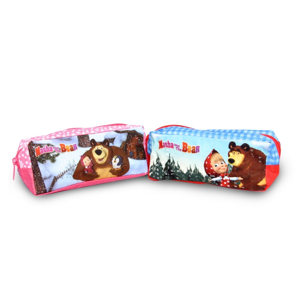 Astuccio tombolino di Masha e l'Orso, con stampa dei personaggi. Disponibile in due colori e soggetti: rosso e azzurro oppure rosa. Per bambino e bambina scuola elementare e materna.