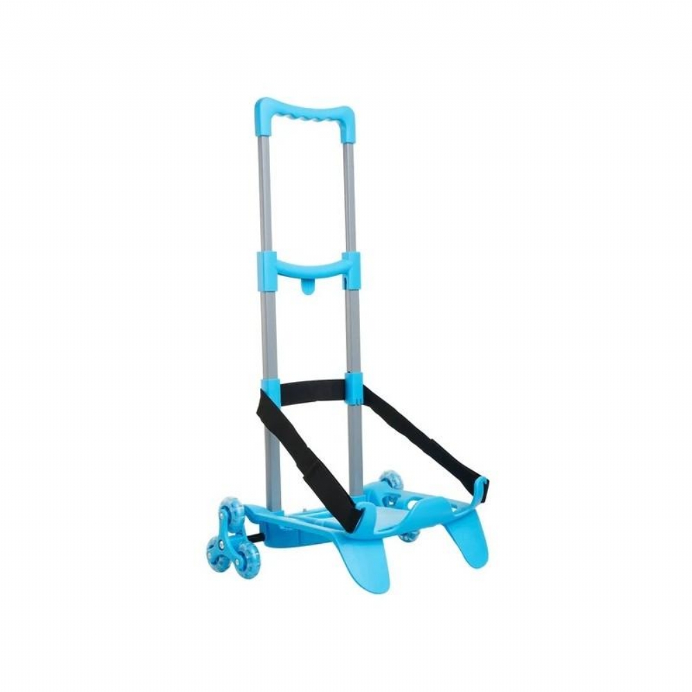 Carrello Trolley 3 ruote Be Box Plus Pieghevole Azzurro con blocca zaino. Regolare gli elastici tramite gli appositi velcri laterali per il corretto contenimento del prodotto. Trasformano qualunque zaino in un Trolley leggero e maneggevole. Questo Portazaino è pratico con manico telescopico e fondo reclinabile.