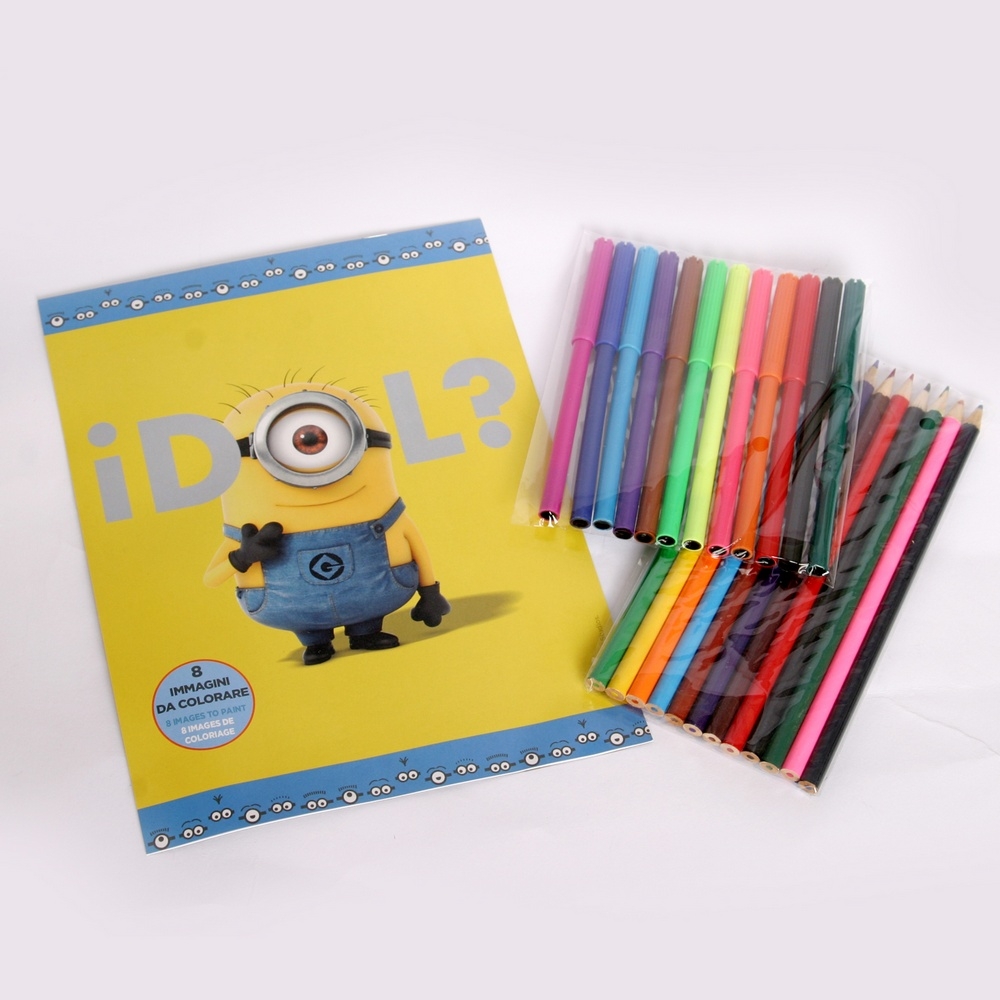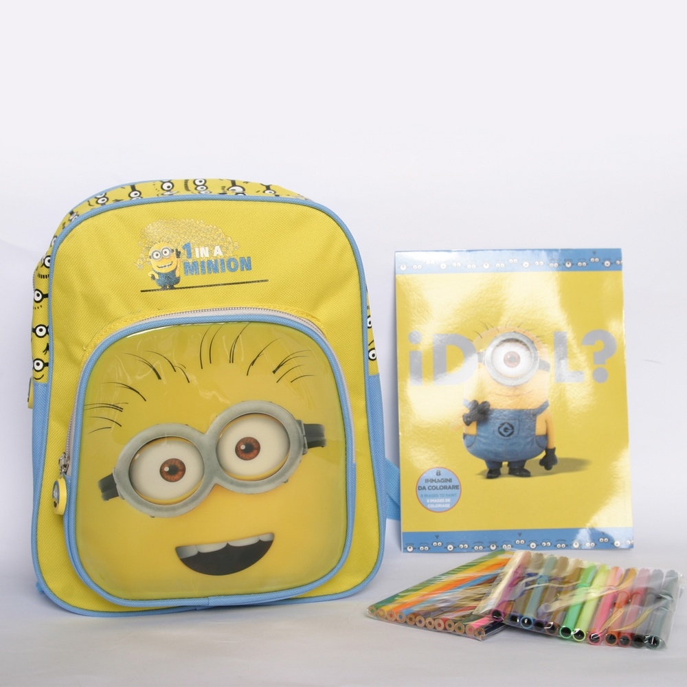 Zainetti Zaini per la scuola Materna dei MINIONS Cattivissimo Me. Questo piccolo Zaino dei Minions Gialli adatto per bambini dell'Asilo, Scuola Materna, è dotato di due tasche con apertura a zip. In Offerta Esclusiva e al prezzo più basso ed economico lo Zaino dei Minions contiene 12 colori a matita, 12 colori a penarello, un album di designi minion da colorare