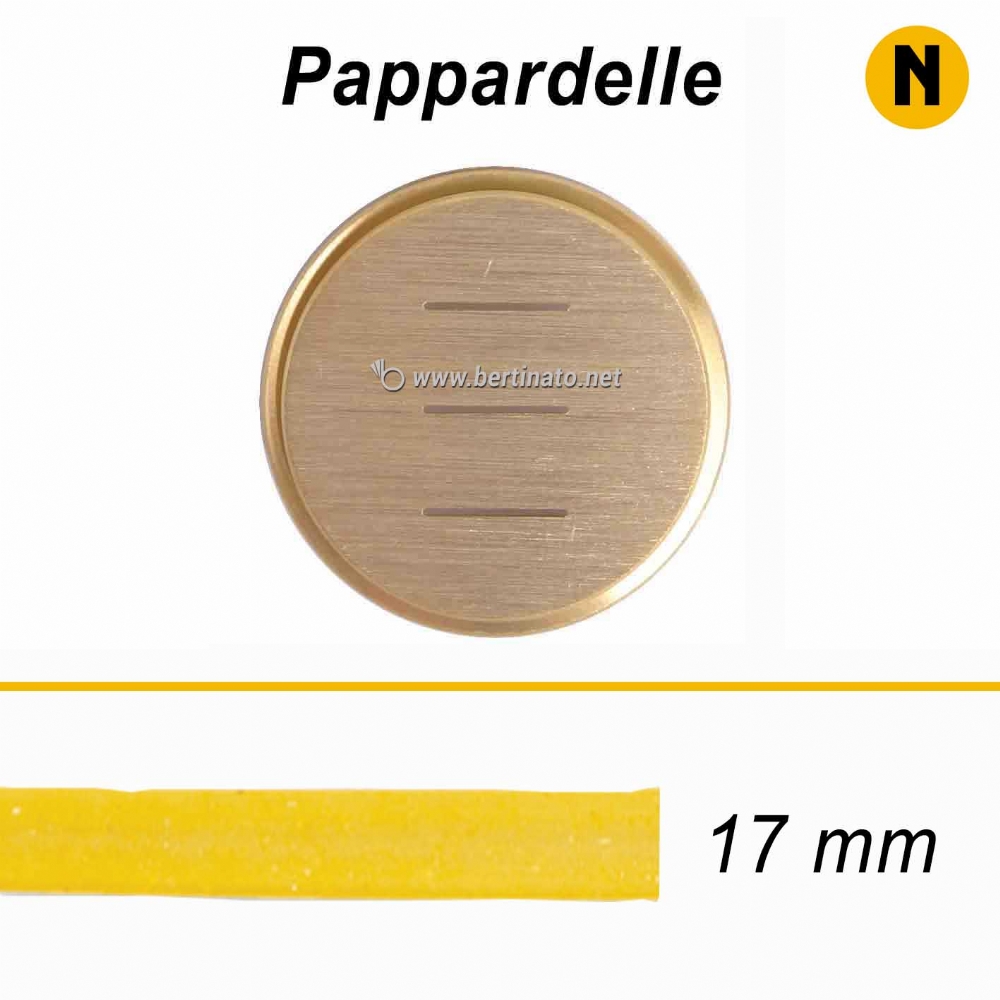 Trafile formato Pappardelle adatte per le macchine per fare la pasta La Fattorina. Larghezza Pappardella: 17mm circa. Spessore Pappardella: 1mm circa. Diametro esterno trafila: 56mm. Queste sono le trafile disponibili per la macchina per pasta - La Fattorina ![]() ![]() PRODOTTO MADE IN ITALY. Users outside of Italy, please click here for any info |