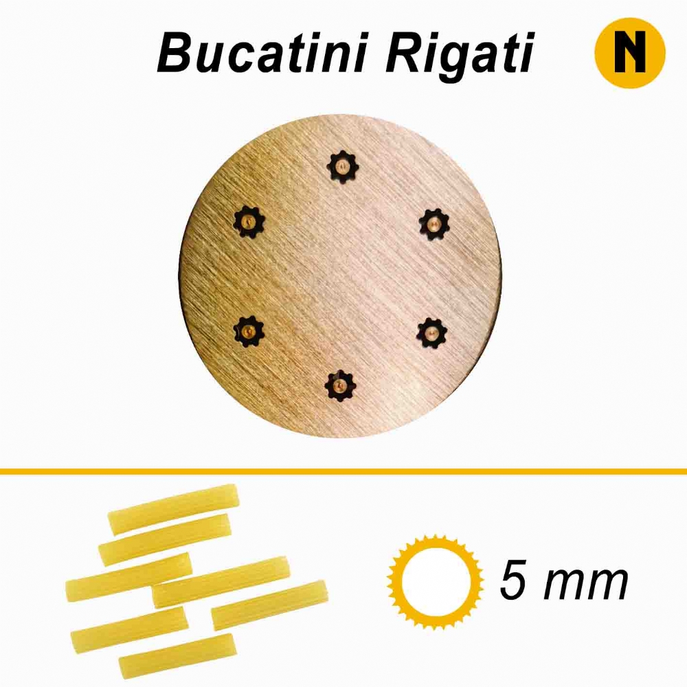 Trafile formato Bucatini Rigati adatte per le macchine per fare la pasta La Fattorina. Grandezza Bucatino: 5mm circa. Spessore Bucatino: 1mm circa. Diametro della trafila: 50mm. Queste sono le trafile disponibili per la macchina per pasta - La Fattorina ![]() ![]() PRODOTTO MADE IN ITALY. Users outside of Italy, please click here for any info |