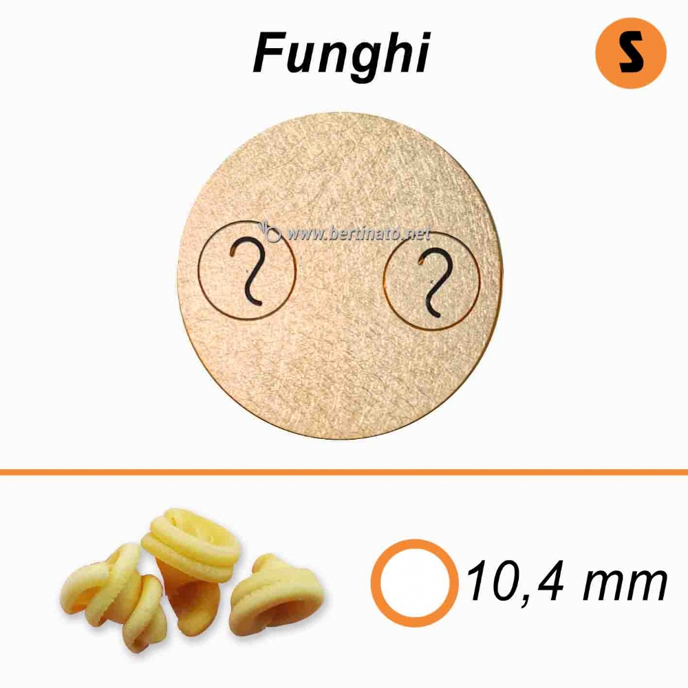 Trafile in bronzo formato Fungo Funghetti per le macchine per fare la pasta La Fattorina.Diametro esterno trafila: 56mm.Queste sono le trafile disponibili per la macchina per pasta - La FattorinaPRODOTTO MADE IN ITALY. Users outside of Italy, please click here for any info