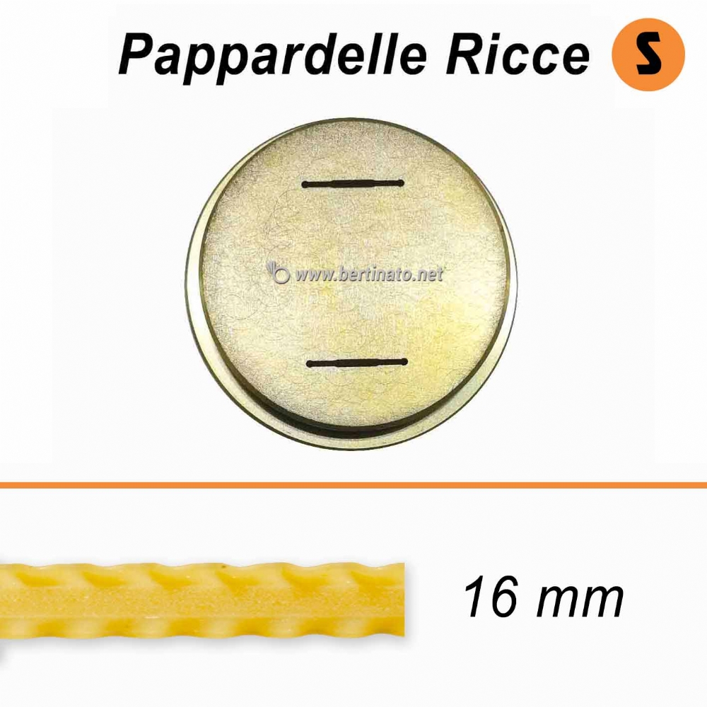 Trafile in bronzo formato Pappardella Riccia Reginette Mafalde per le macchine per fare la pasta La Fattorina. Larghezza Pappardella: 16mm o 12mm. Spessore Pappardella: 1mm circa. Diametro esterno trafila: 56mm. Queste sono le trafile disponibili per la macchina per pasta - La Fattorina ![]() ![]() PRODOTTO MADE IN ITALY. Users outside of Italy, please click here for any info |