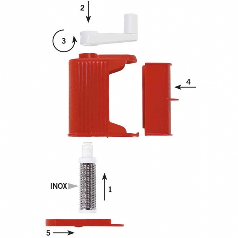 Semplici e Pratiche Grattugie Manuali a Manovella Per Formaggi Rigamonti art. 40 a manovella in polipropilene e con rullo in acciaio inox, facilmente smontabile in tutte le sue parti per semplificare le operazioni di pulizia. Con questo Grattugino si può grattuggiare il formaggio parmigiano o altri formaggi a pasta dura direttamente sui piatti di pasta fresca o su altri tipi di pietanze ed inoltre si può grattugiare anche cioccolato per creazioni di dolci. |