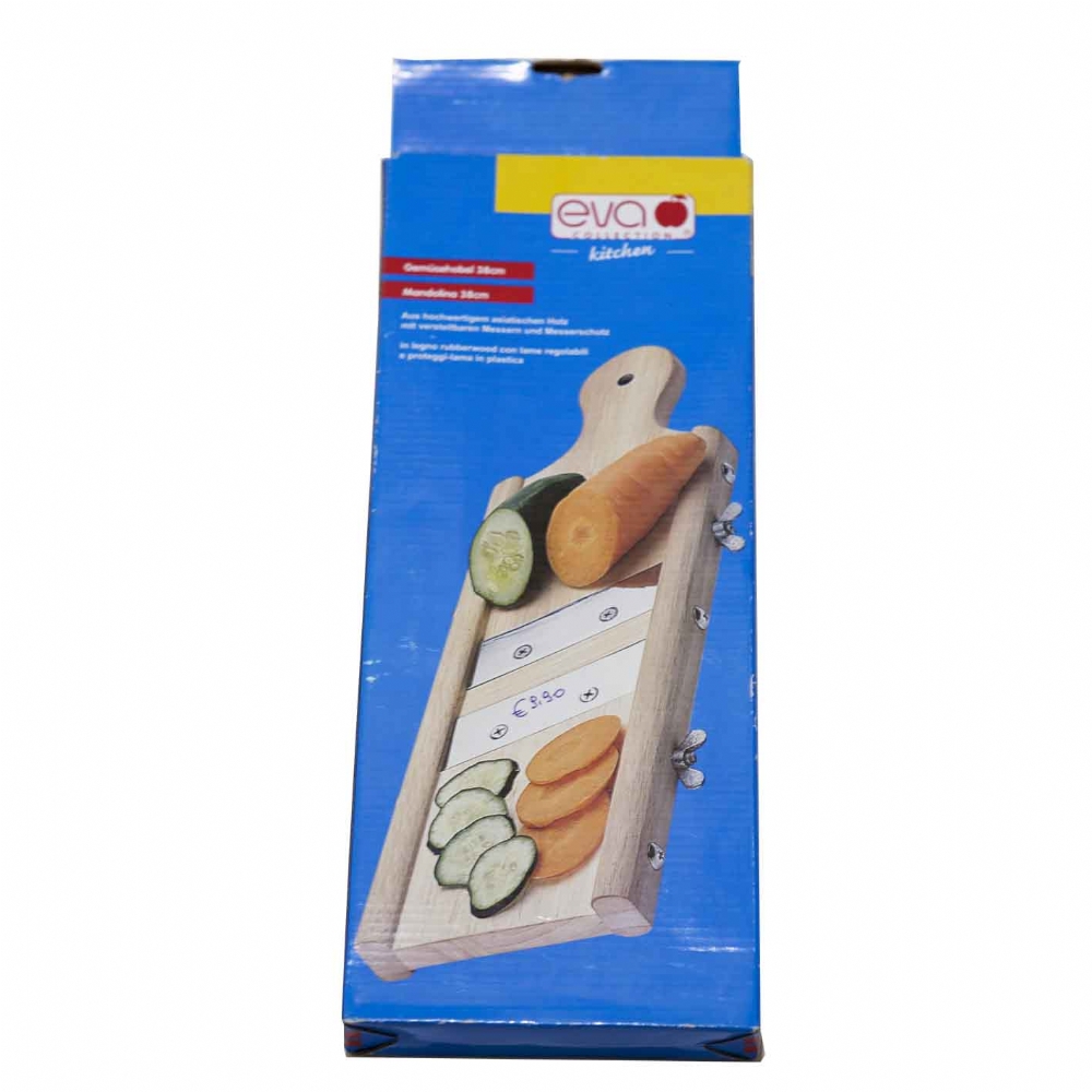 Pratica ed elegante mandolina in legno rubberwood con lunghezza di 38cm della Eva collection con lame regolabili e proteggi lama in plastica.Colore: Legno.Dimensione Imballo: 40X15,5x3cm. Users outside of Italy, please click here for any info